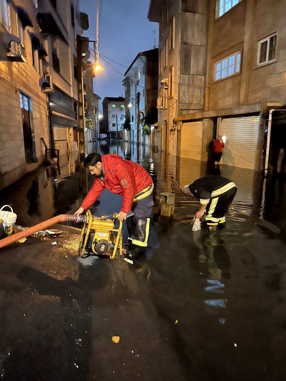 آبگرفتگی کوچه صفا در رشت؛ آتش نشانی وارد میدان شد