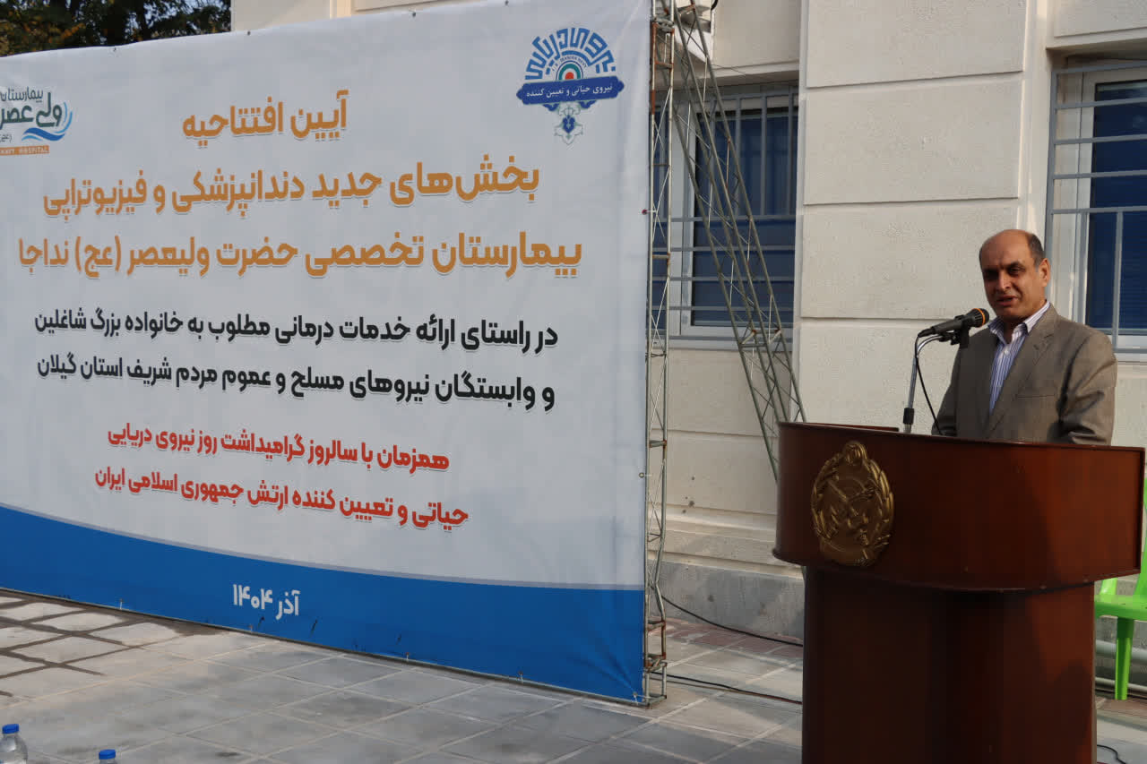 به گزارش پایگاه اطلاع رسانی دیارمیرزا، همزمان با ایام گرامیداشت روز نیروی دریایی، بخشهای جدید دندانپزشکی با ۶ یونیت و فیزیوتراپی با ۱۱ تخت پیش از ظهر امروز (یکشنبه) با حضور هادی حقشناس استاندار گیلان در بیمارستان حضرت ولیعصر (عج) رشت افتتاح شد و بدین ترتیب ظرفیت ارائه خدمات درمانی به کارکنان نیروهای مسلح، خانوادههای آنان و عموم مردم استان افزایش یافت.استاندار گیلان در این مراسم با اشاره به ضرورت توسعه زیرساختهای درمانی استان گفت: ارتقای کیفیت خدمات پزشکی و افزایش توان ارائه خدمات تخصصی در مراکز درمانی، بهویژه مراکز وابسته به نیروهای مسلح، از اولویتهای دولت در گیلان است و افتتاح این بخشها گامی مؤثر در تحقق این هدف به شمار میرود.