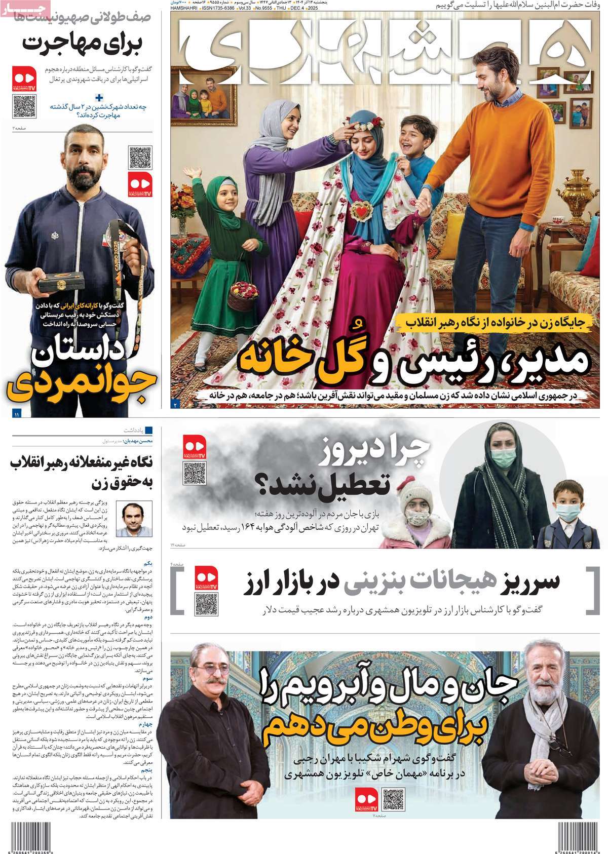صفحه اول روزنامههای پنجشنبه ۱۳ آذر ۱۴۰۴
