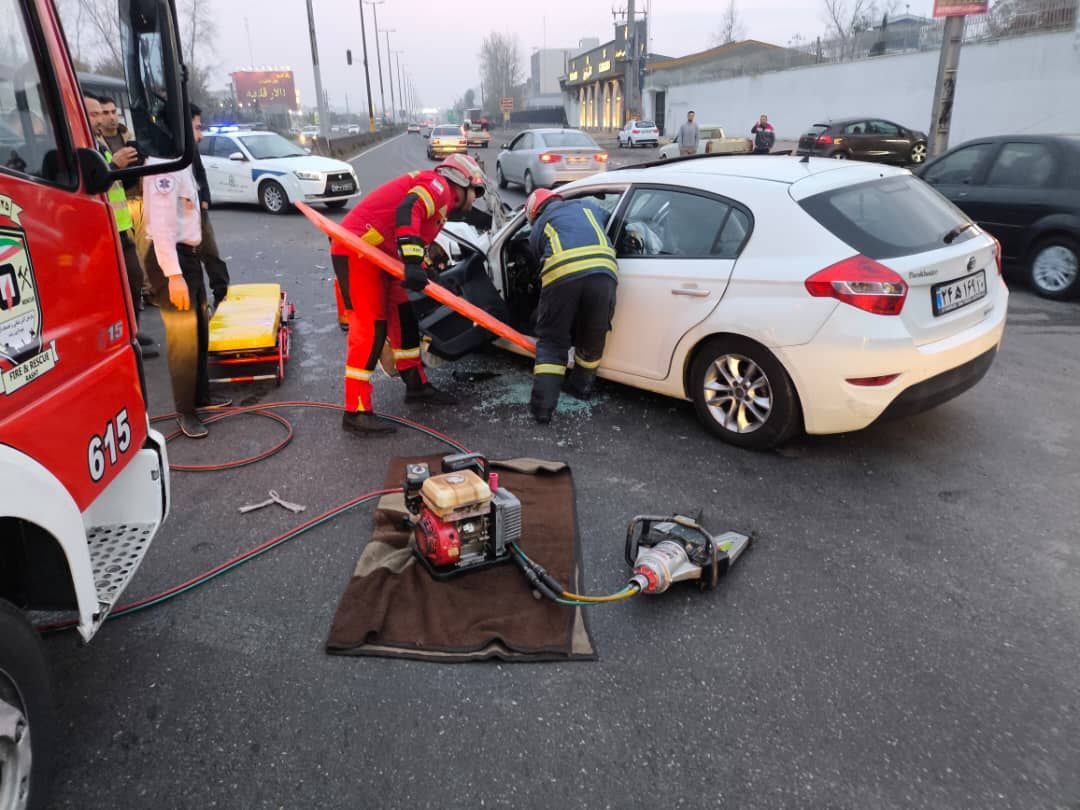 در پی وقوع یک تصادف شدید در ابتدای جاده انزلی، راننده یک دستگاه خودروی سواری پس از برخورد با کامیون، بهطور کامل در داخل خودرو محبوس شد که با حضور سریع آتشنشانان و انجام عملیات تخصصی نجات، از میان آهنپارهها رها و به مرکز درمانی منتقل شد.