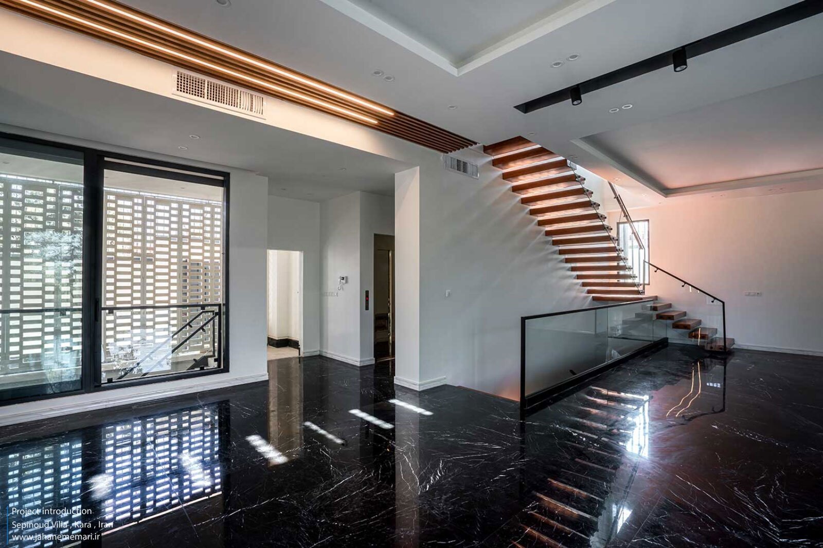 پروژه «ویلای سپینود» در شهرک طاووسیه کرج، با هدف حفاظت از درختان قدیمی و تنومند سایت طراحی شده است. این بنا با زیربنای ۳۵۰ متر مربع، توسط آتلیه معماری سما مدیر اجرا شده و رویکردی مینیمال در هماهنگی با طبیعت باغ سالخورده دارد.