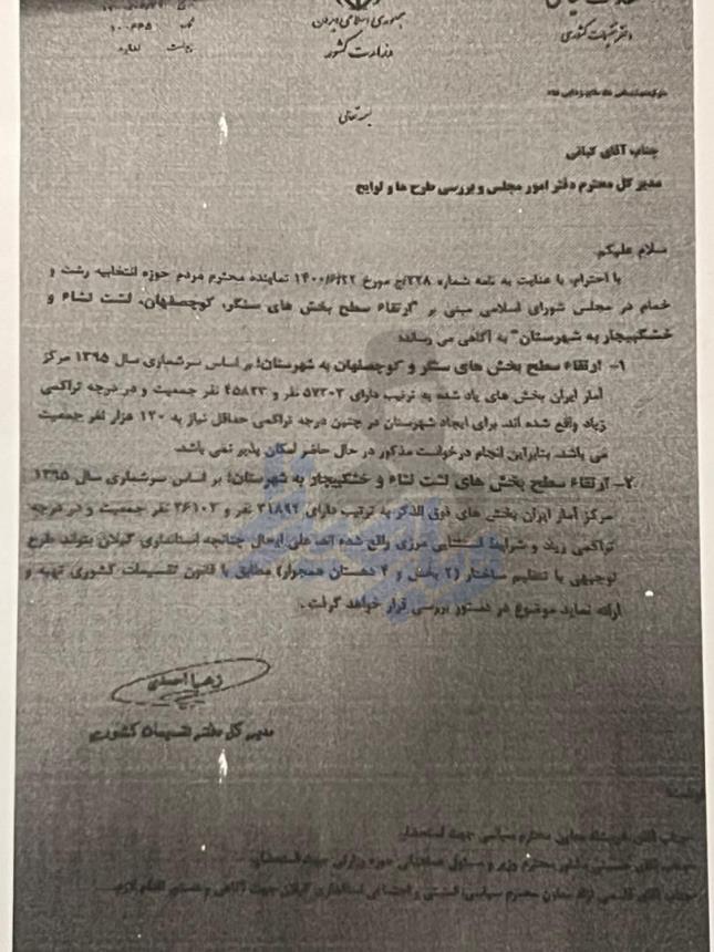 نکته بسیار حائز اهمیت اینکه به استناد نامه سال ۱۴۰۰ زهرا احمدی، مدیرکل تقسیمات کشوری، در پاسخ به جبار کوچکینژاد، نماینده مردم شهرستانهای رشت و خمام در مجلس، عملاً استانداری گیلان خلاف نظر وزارت کشور عمل کرده و با معرفی سنگر، فرصتسوزی بزرگی میشود.