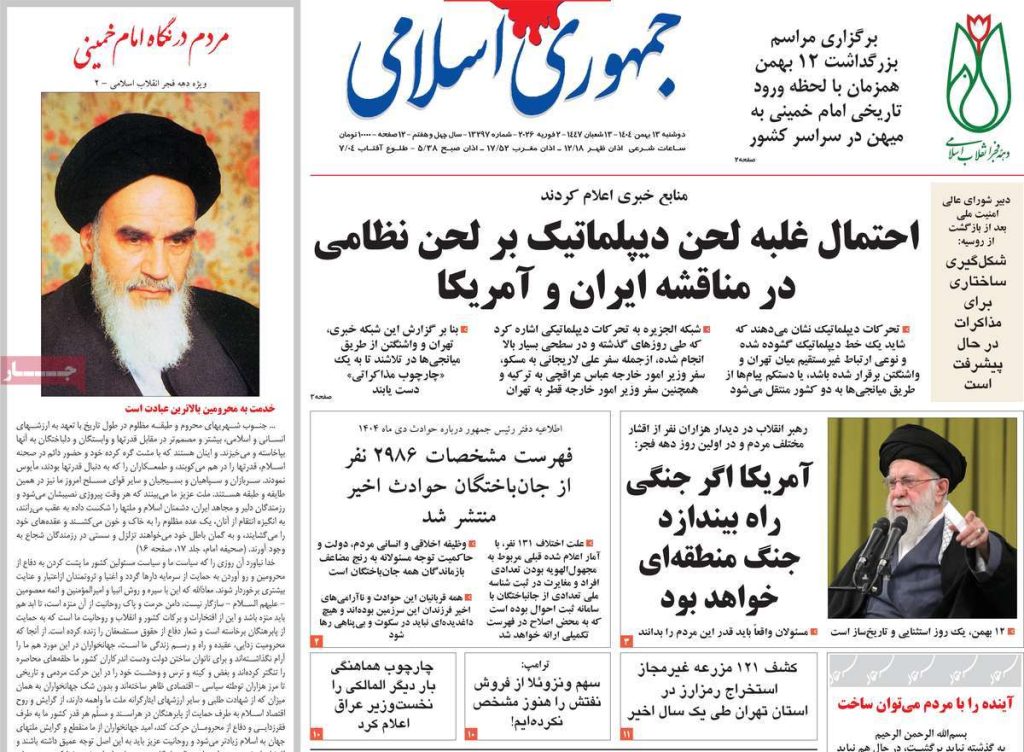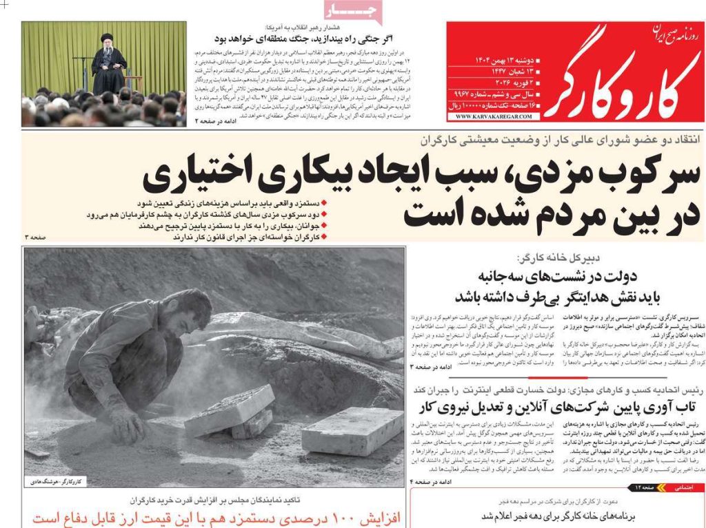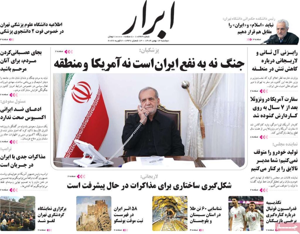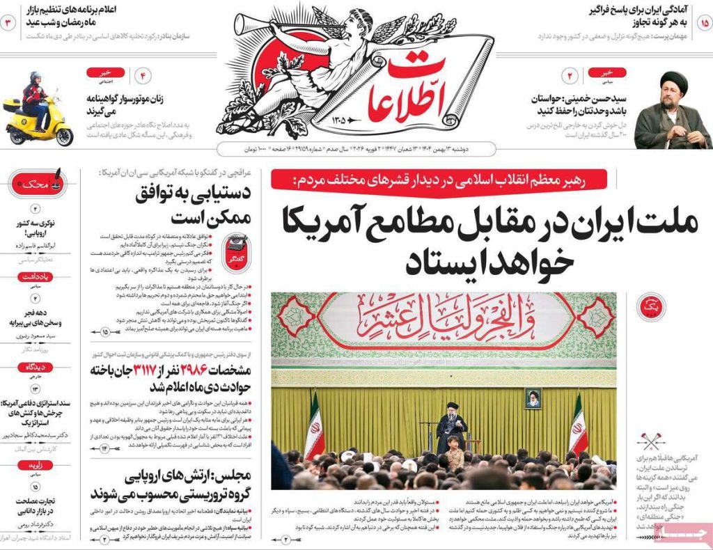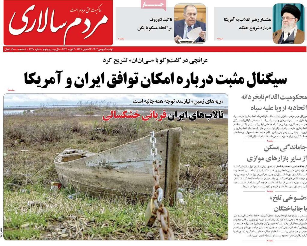 صفحه اول روزنامههای دوشنبه ۱۳ بهمن ۱۴۰۴