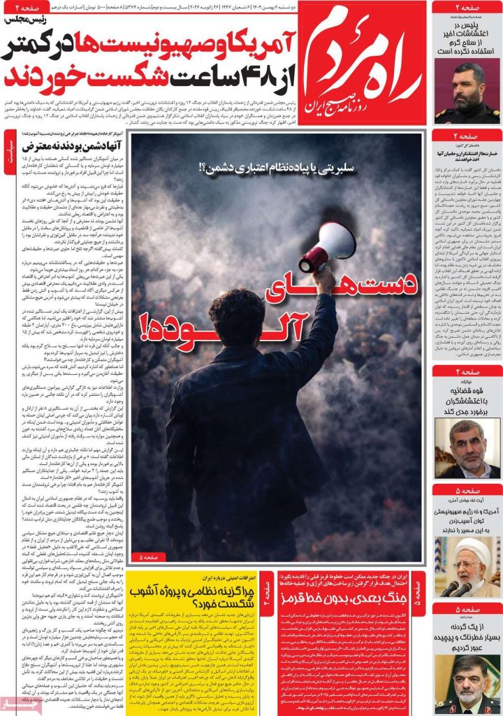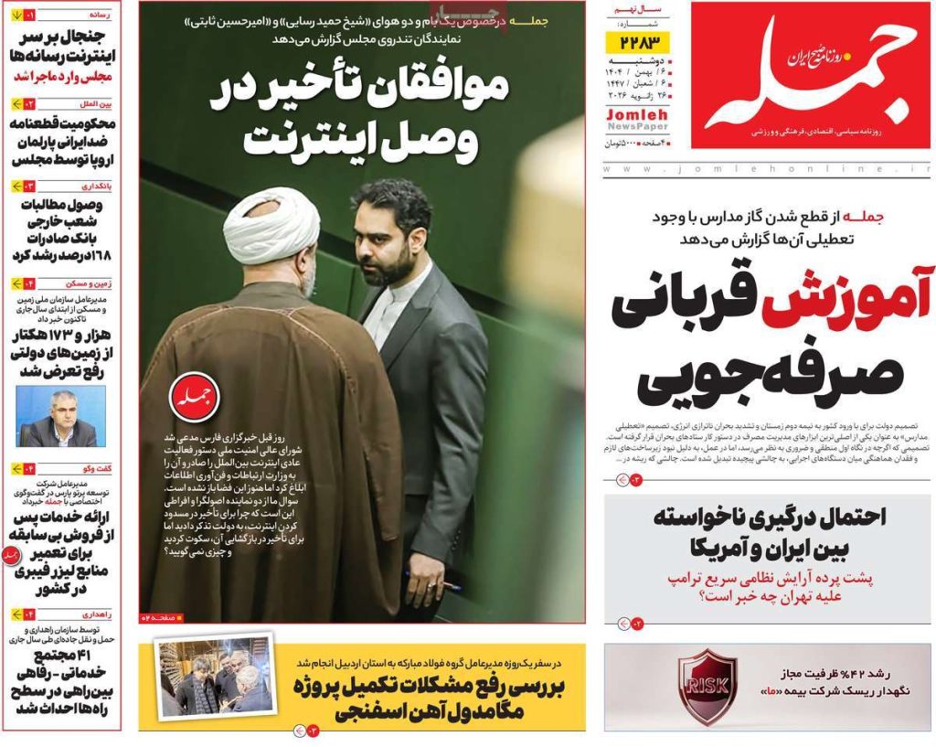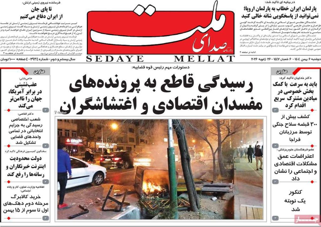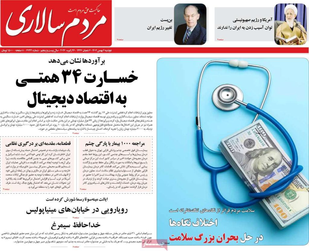 صفحه اول روزنامههای دوشنبه ۶ بهمن ۱۴۰۴