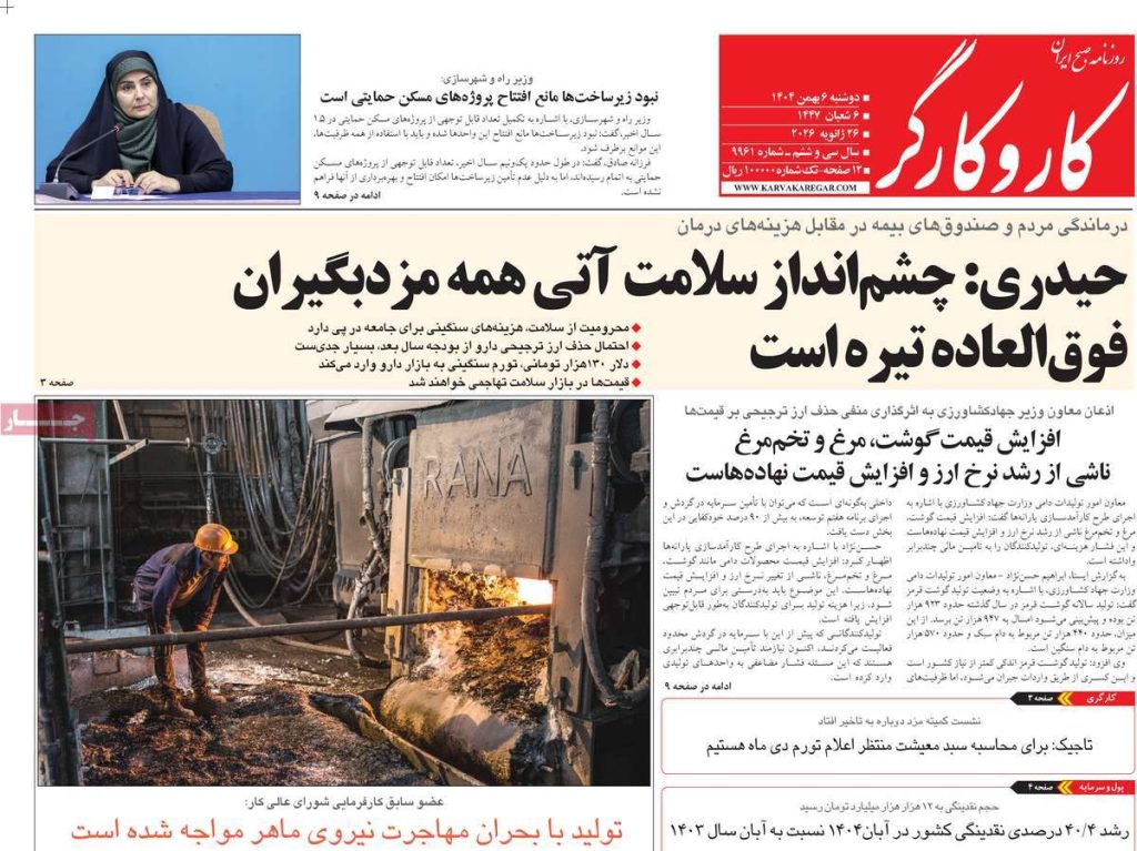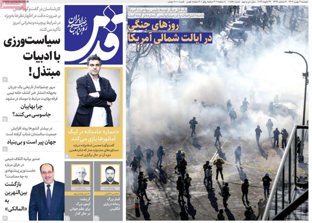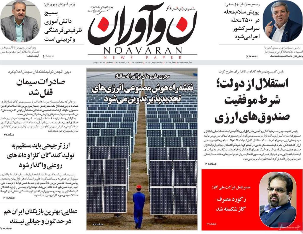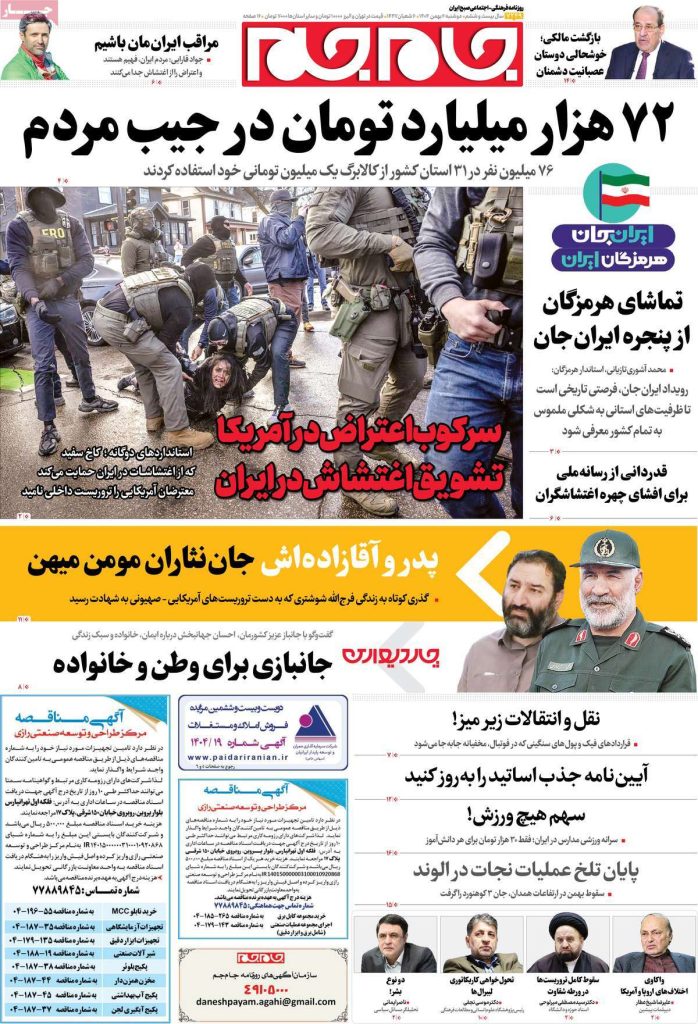 صفحه اول روزنامههای دوشنبه ۶ بهمن ۱۴۰۴