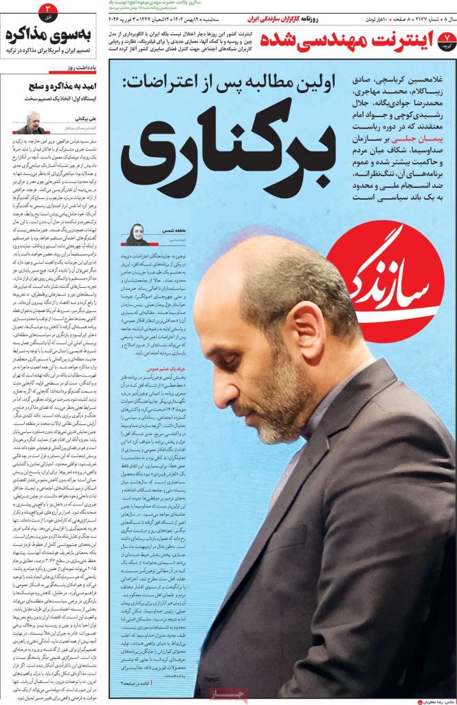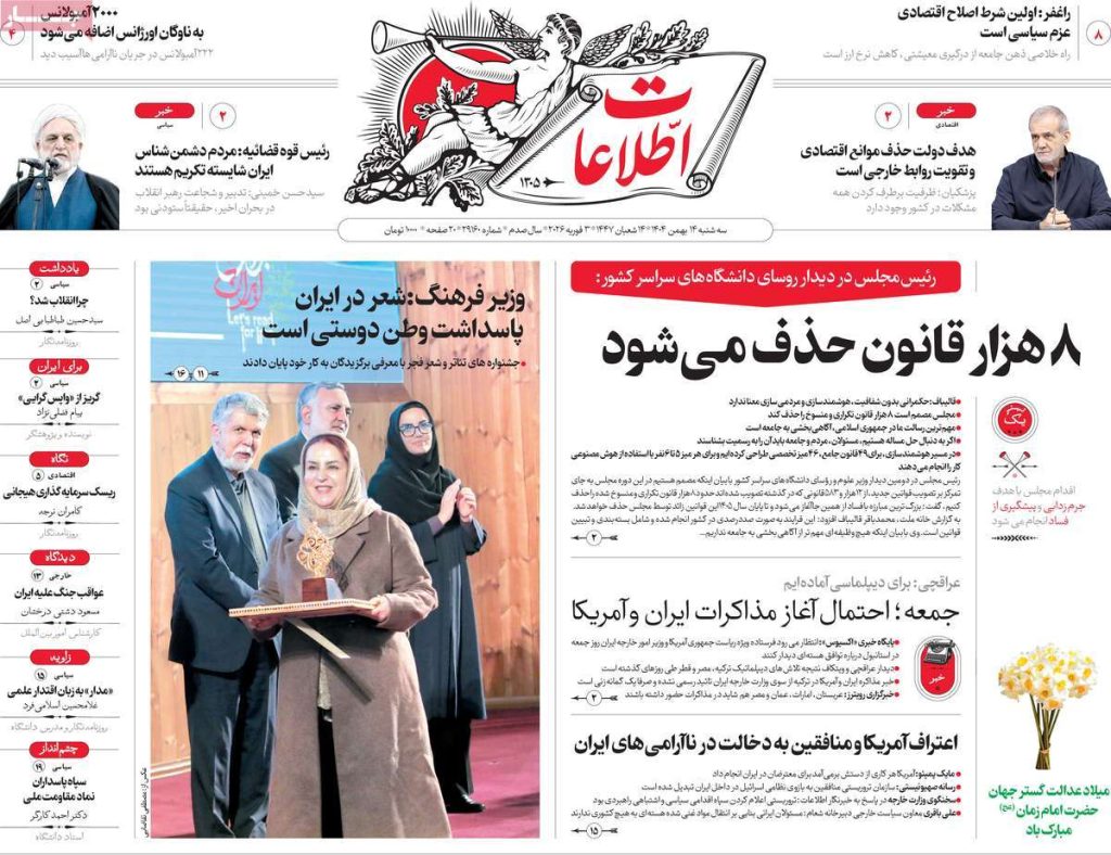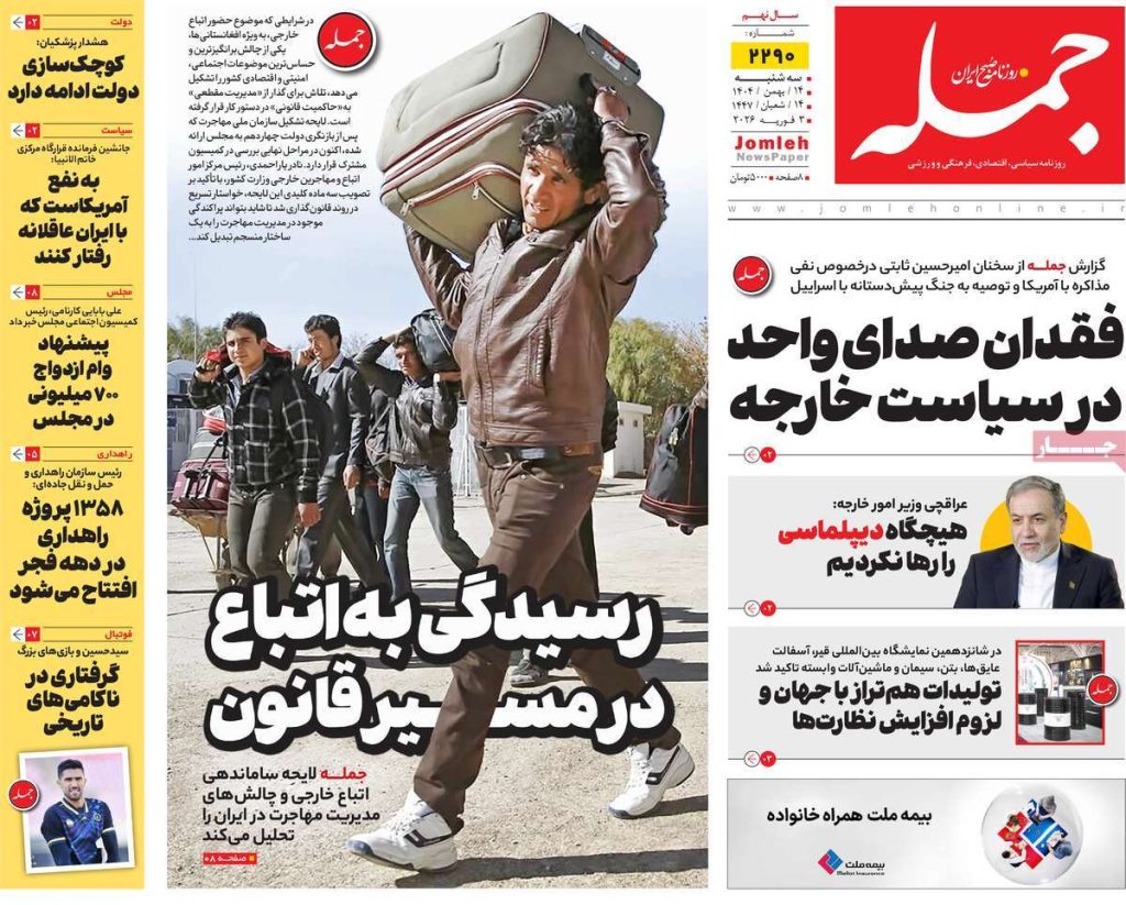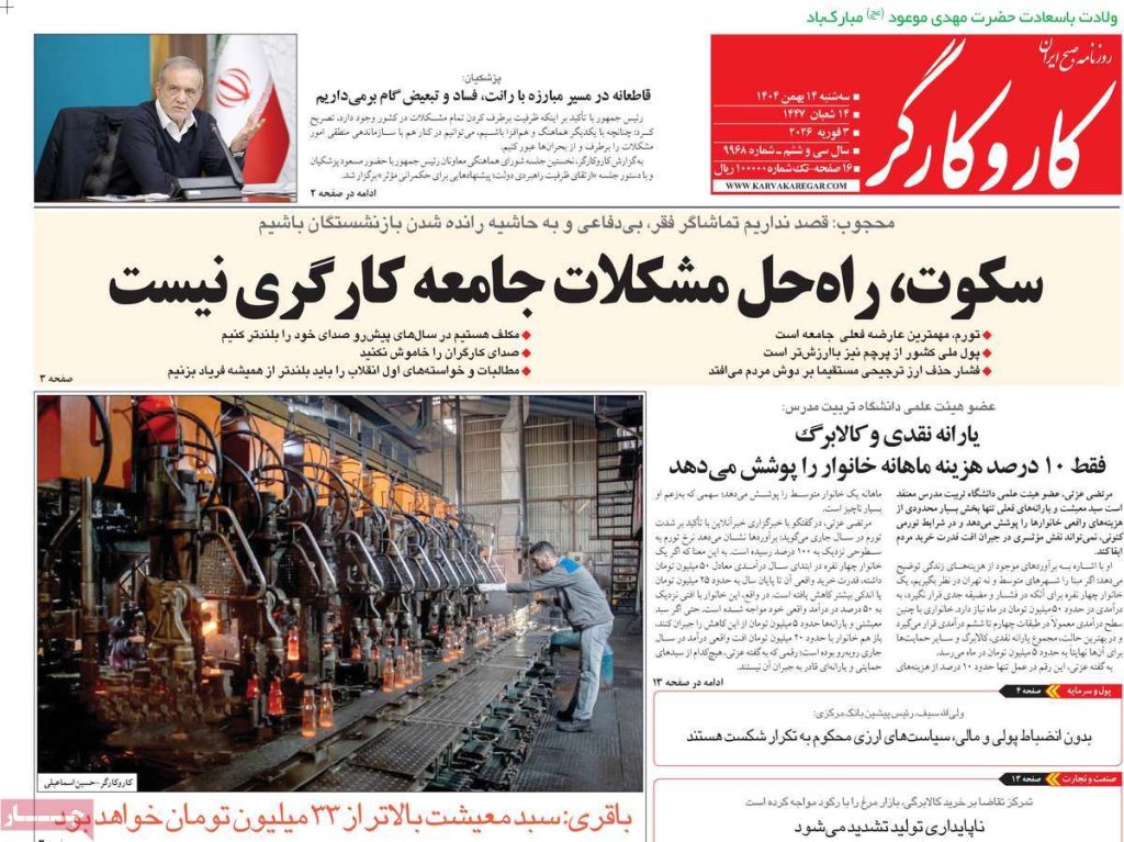 صفحه اول روزنامه‌های سه‌شنبه ۱۴ بهمن ۱۴۰۴