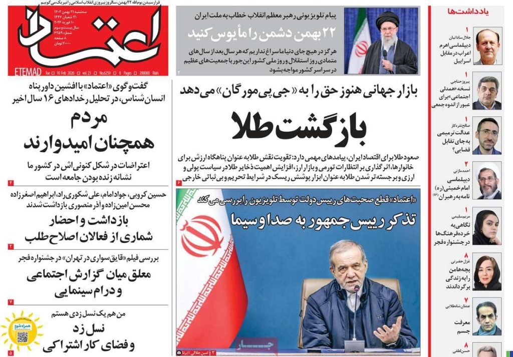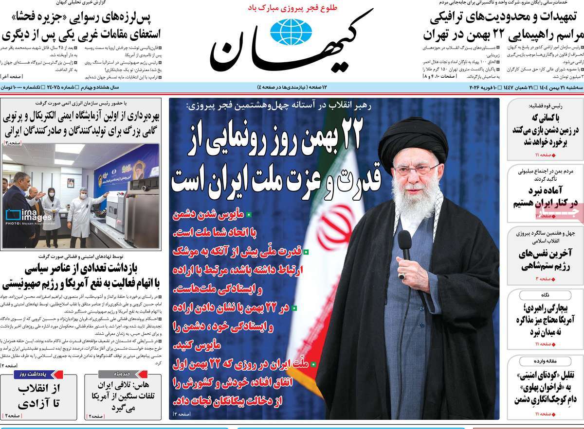 صفحه اول روزنامه‌های سه‌شنبه ۲۱ بهمن ۱۴۰۴