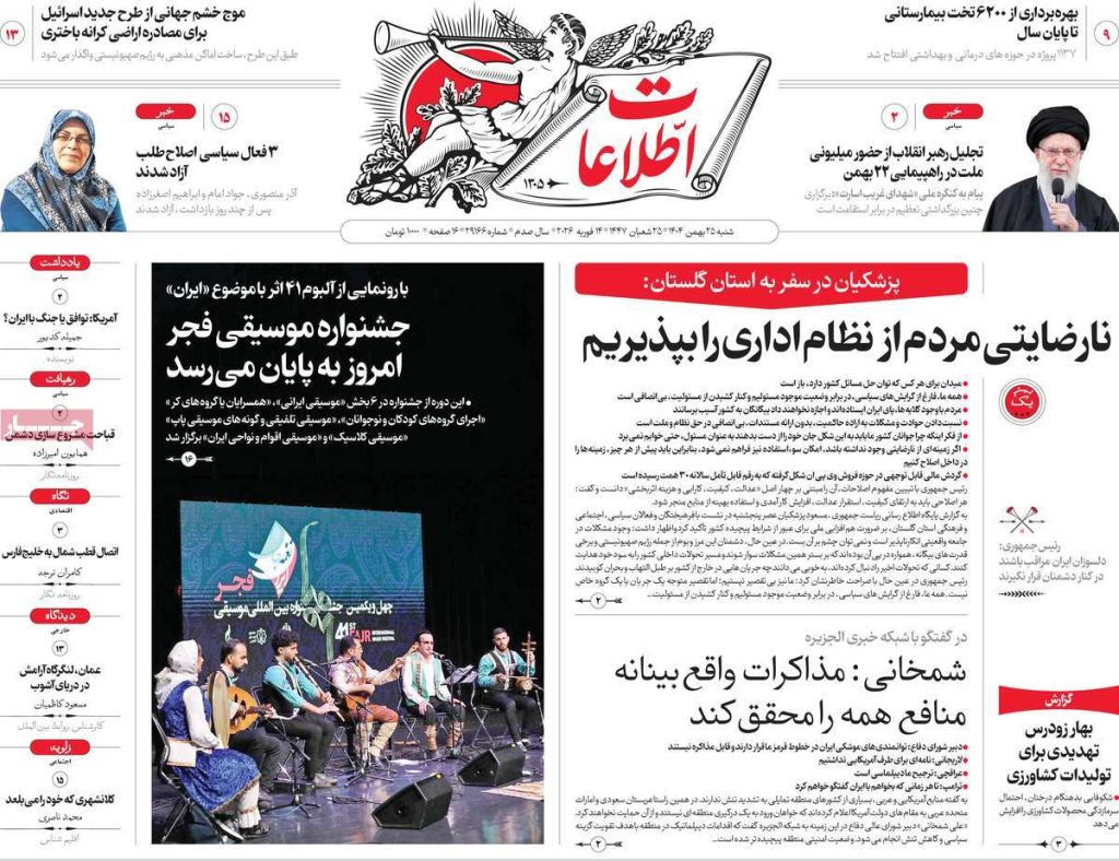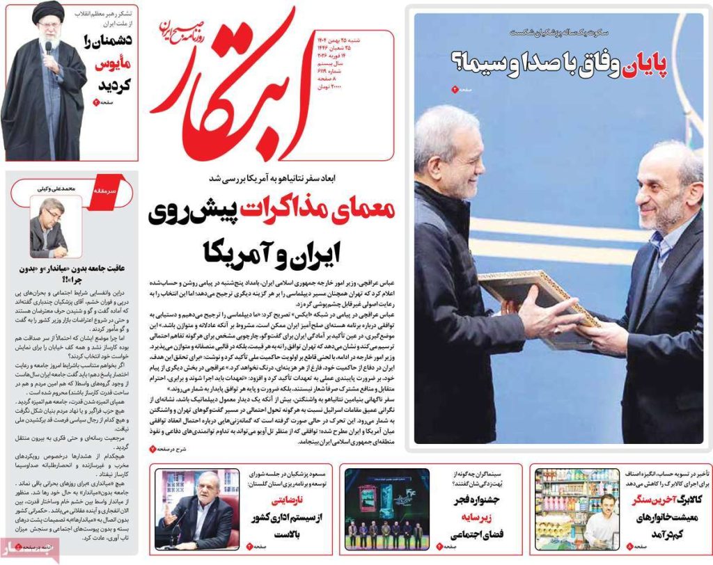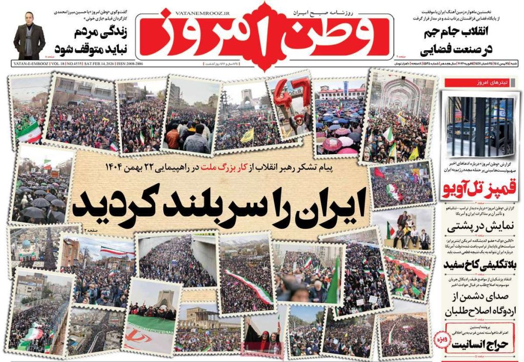 صفحه اول روزنامه‌های شنبه ۲۵ بهمن ۱۴۰۴