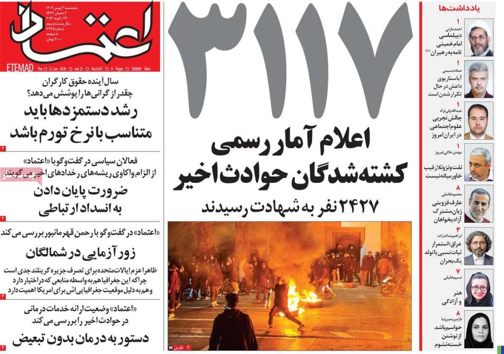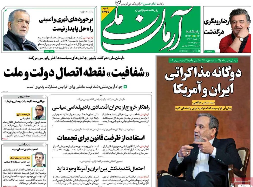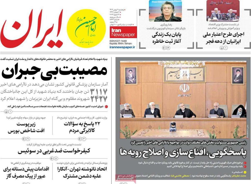 صفحه اول روزنامههای پنجشنبه ۲ بهمن ۱۴۰۴