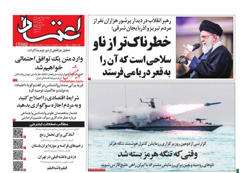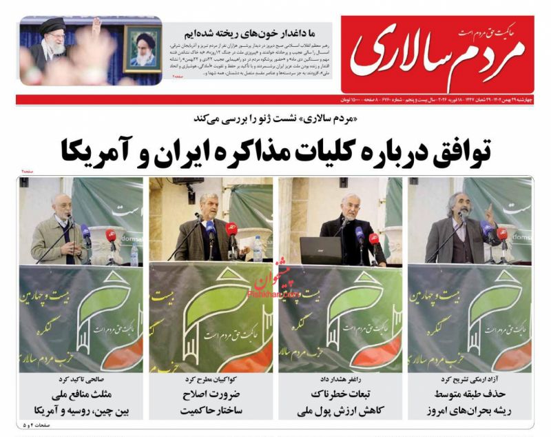 صفحه اول روزنامههای چهارشنبه ۲۹ بهمن ۱۴۰۴