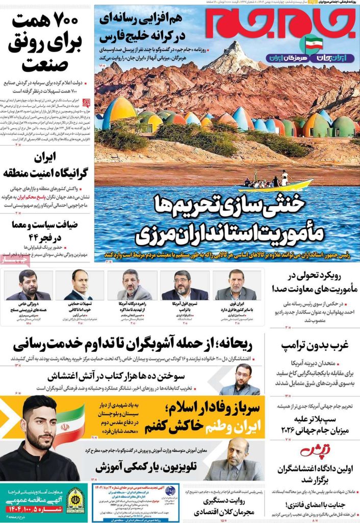 صفحه اول روزنامههای چهارشنبه ۸ بهمن ۱۴۰۴