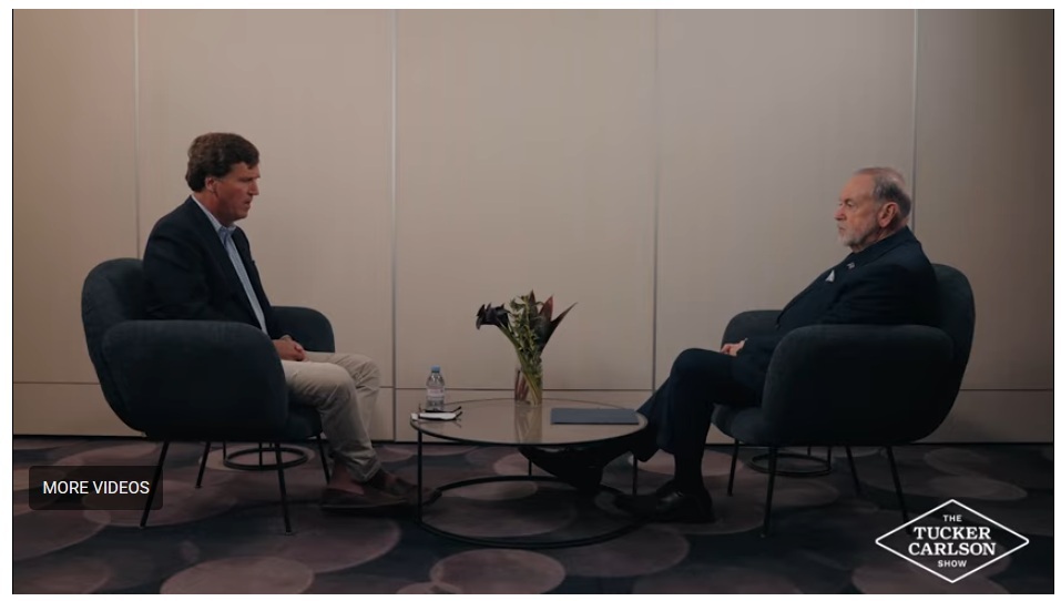 کارلسون ادامه داد: «من سعی دارم پیامدهای الهیات شما برای ژئوپلیتیک را بفهمم، چون شما میگویید دولت کنونی اسرائیل حق اخلاقی دارد کشورهایی را که اکنون متعلق به مردمان دیگر است تصرف کند.»