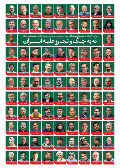 ۳۵۳ نفر از پژوهشگران، فعالان مدنی و سیاسی و دغدغه‌مندان ایران بیانیه‌ای با عنوان «نه به جنگ و تجاوز علیه ایران» امضا و منتشر کرده‌اند.