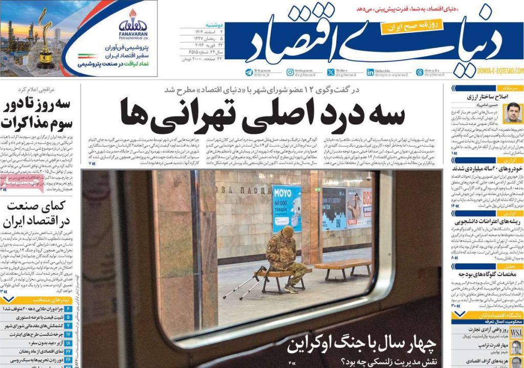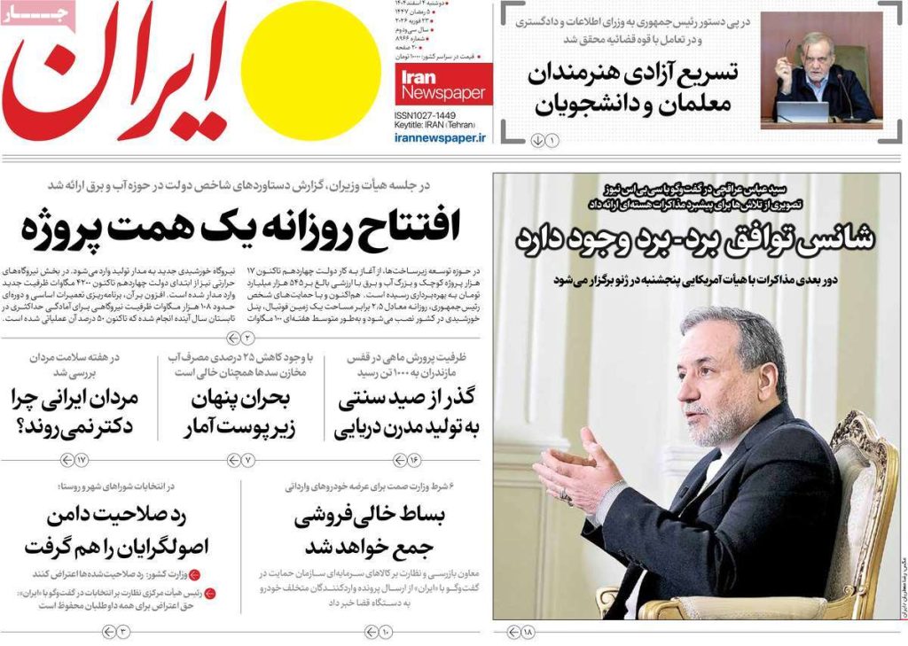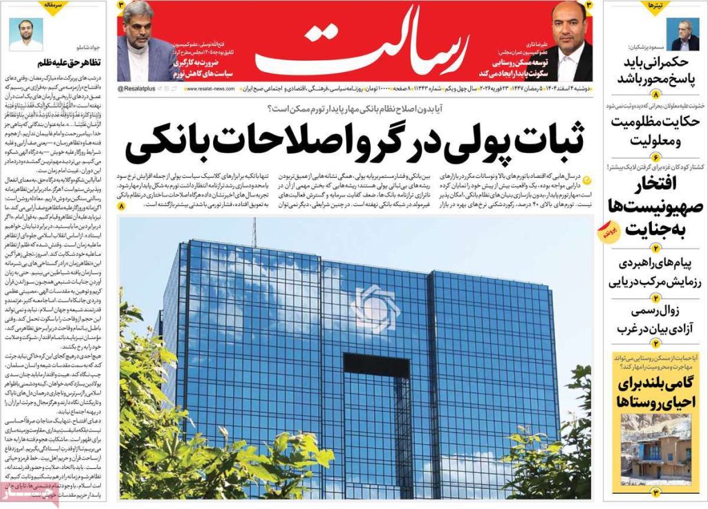 صفحه اول روزنامههای دوشنبه ۴ اسفند ۱۴۰۴
