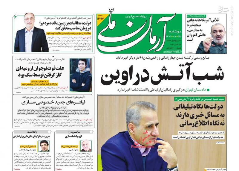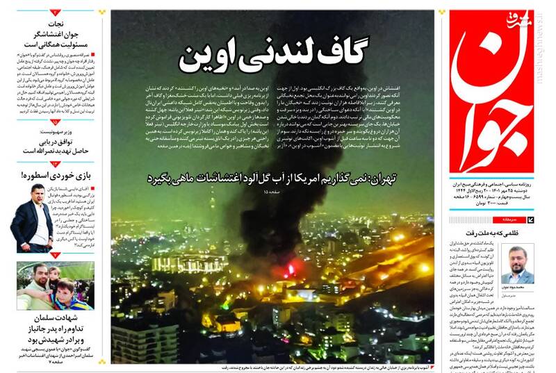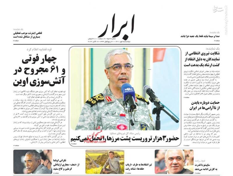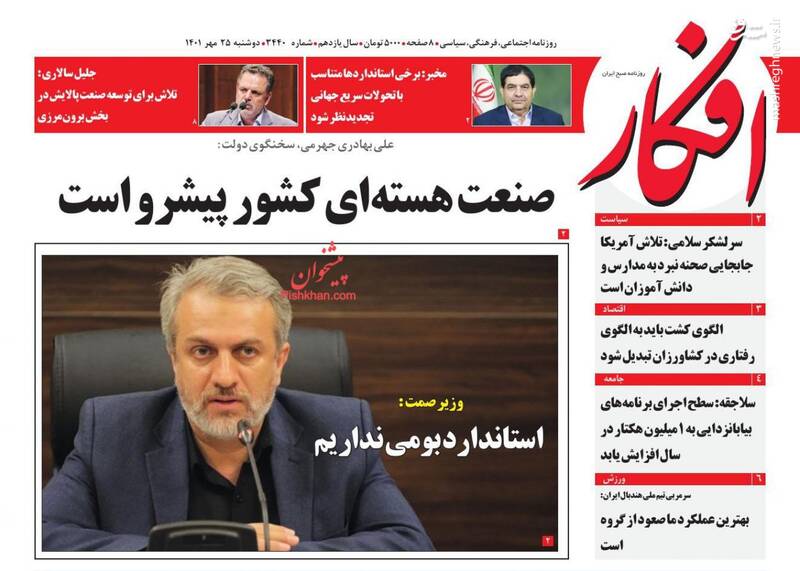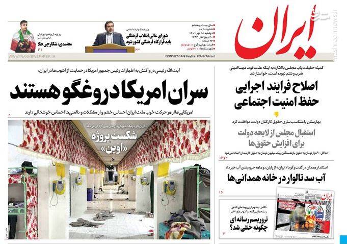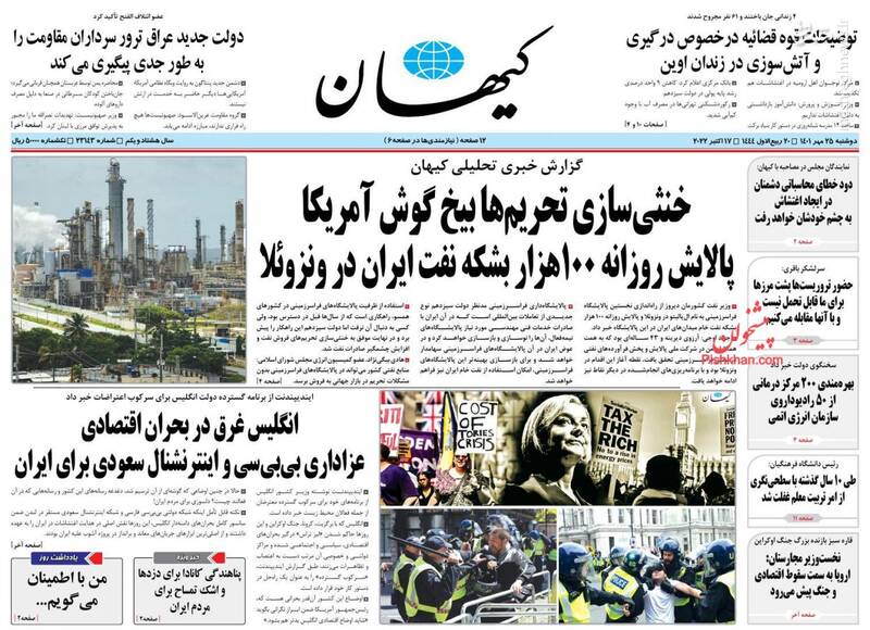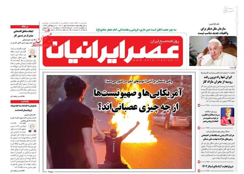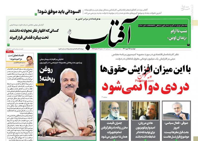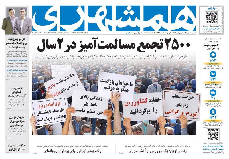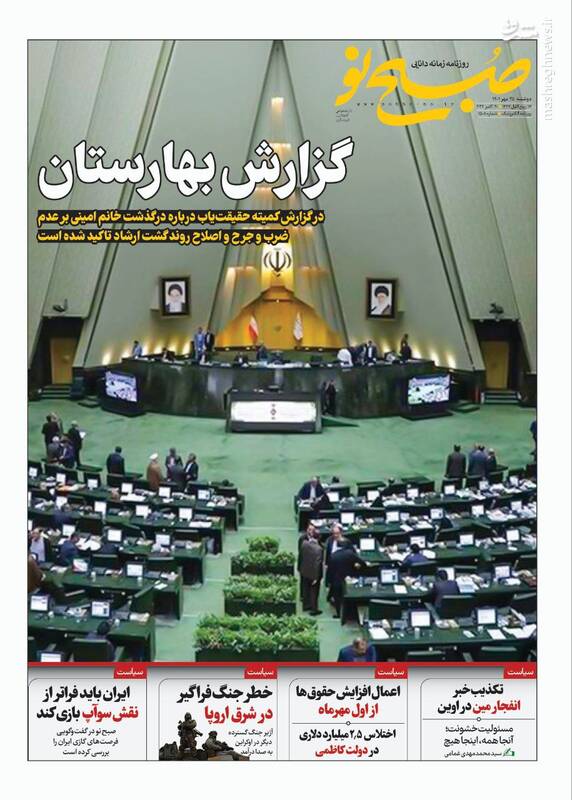 صفحه اول روزنامههای دوشنبه ۲۵ مهر ۱۴۰۱