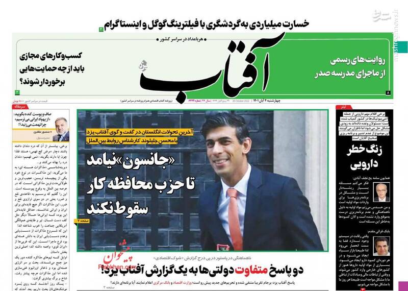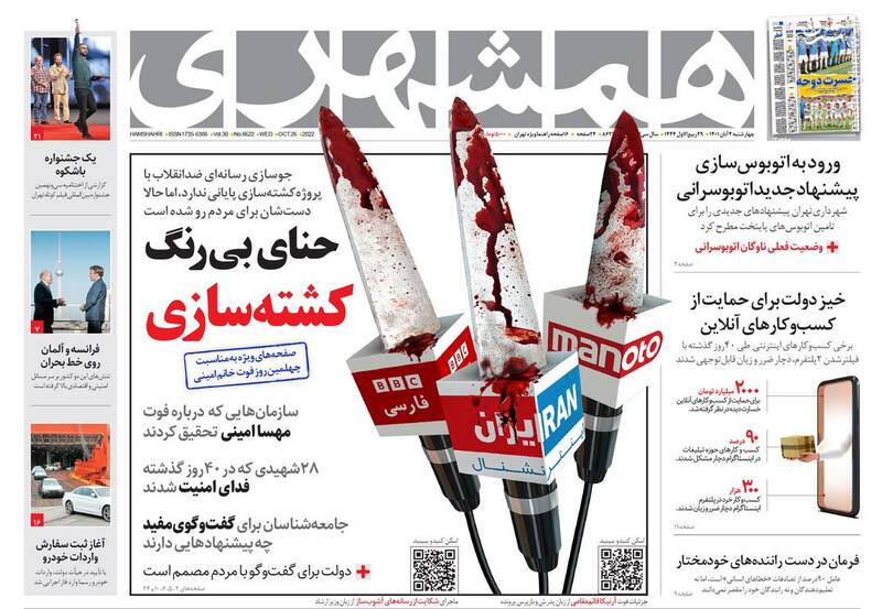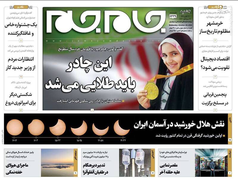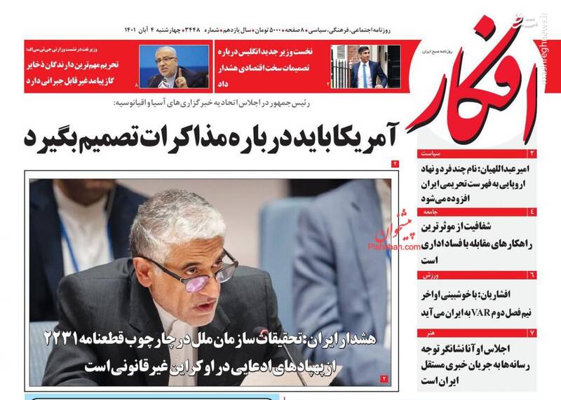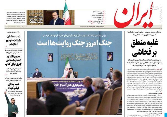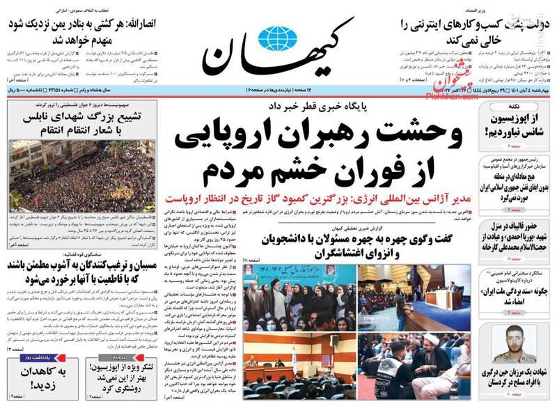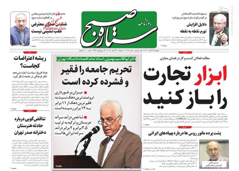 صفحه اول روزنامههای چهارشنبه ۴ آبان ۱۴۰۱