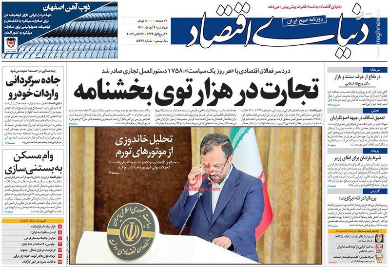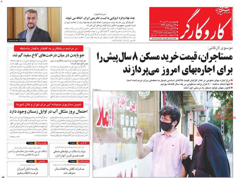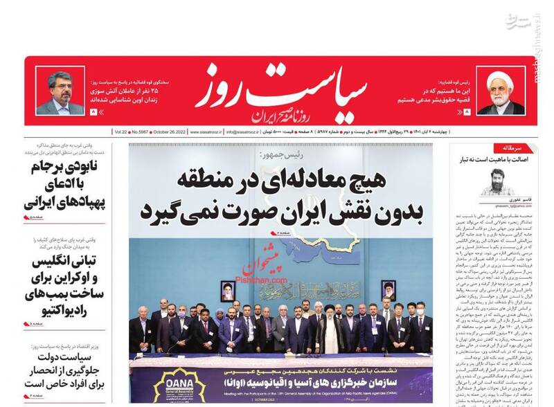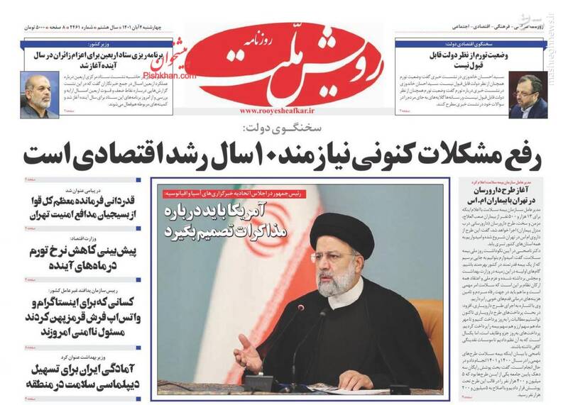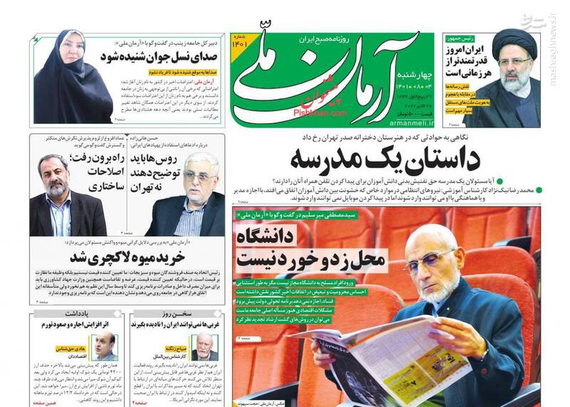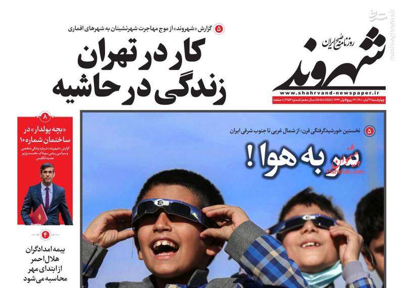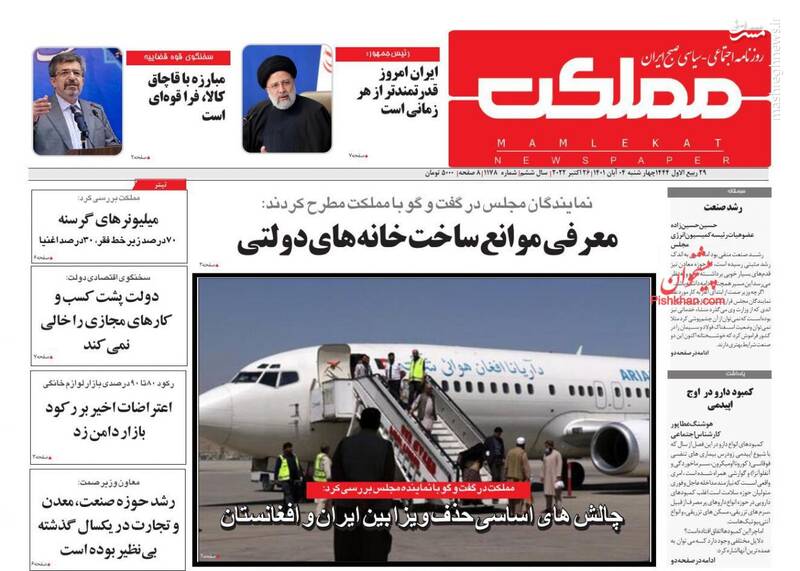 صفحه اول روزنامههای چهارشنبه ۴ آبان ۱۴۰۱