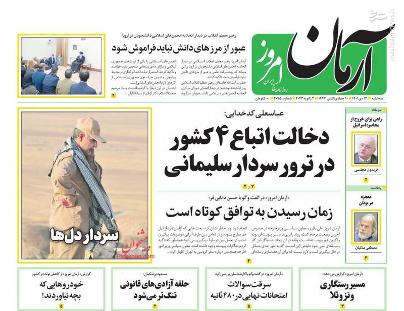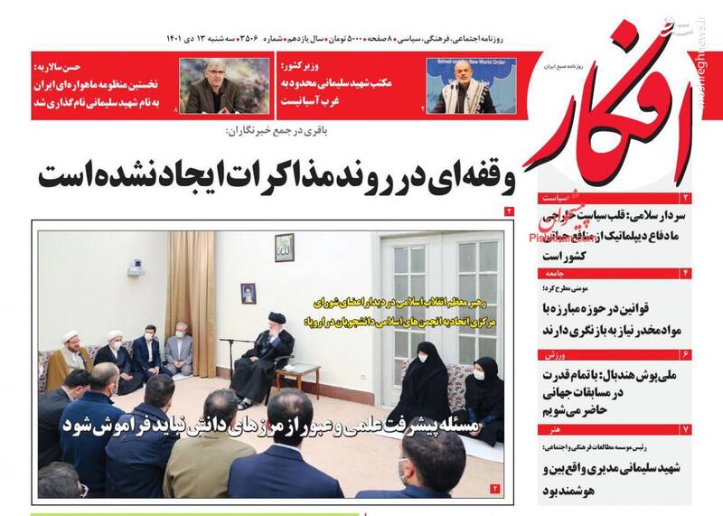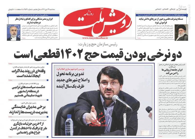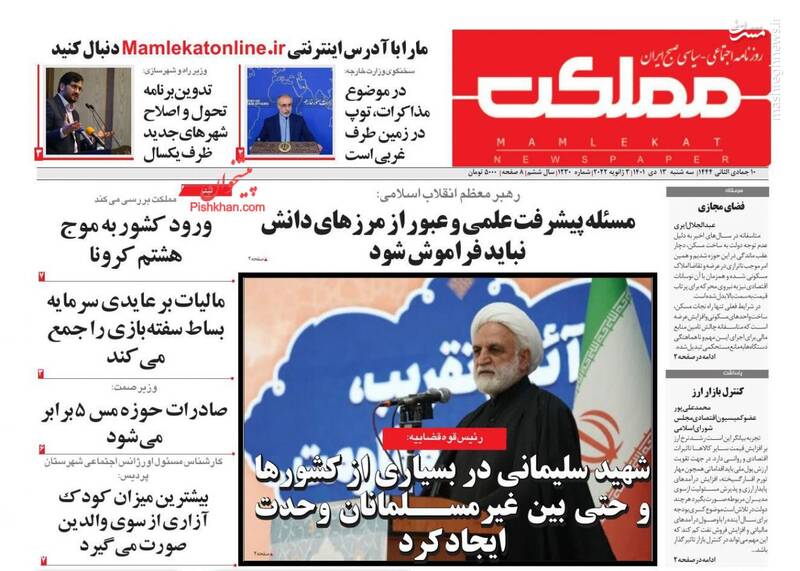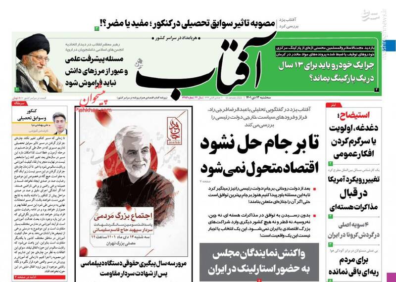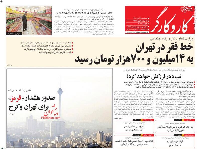 صفحه اول روزنامههای سهشنبه ۱۳ دی ۱۴۰۱