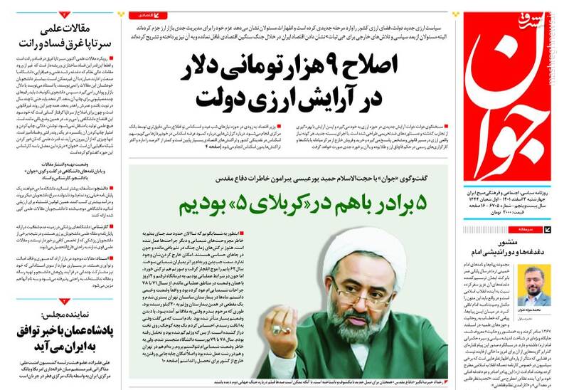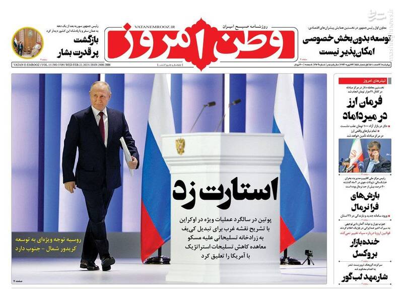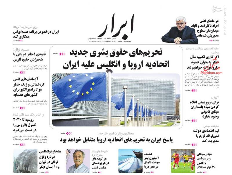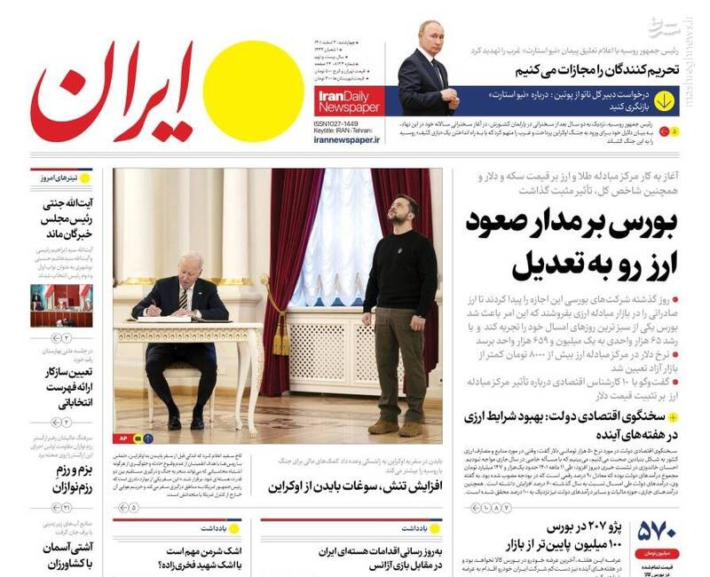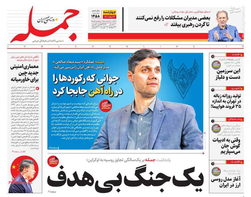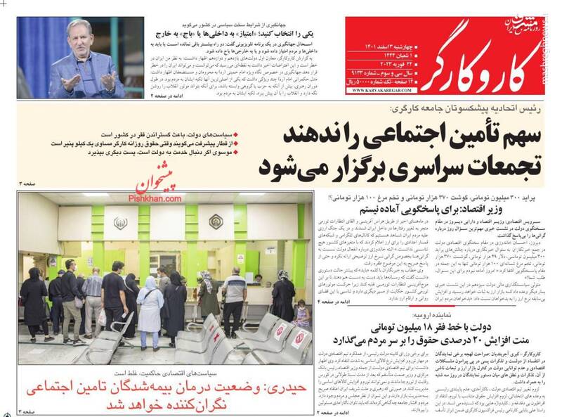 صفحه اول روزنامههای چهارشنبه سوم اسفند ۱۴۰۱