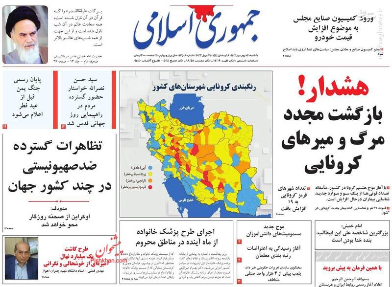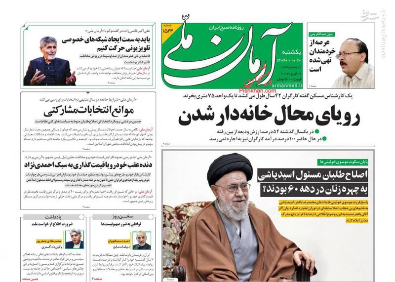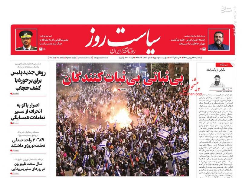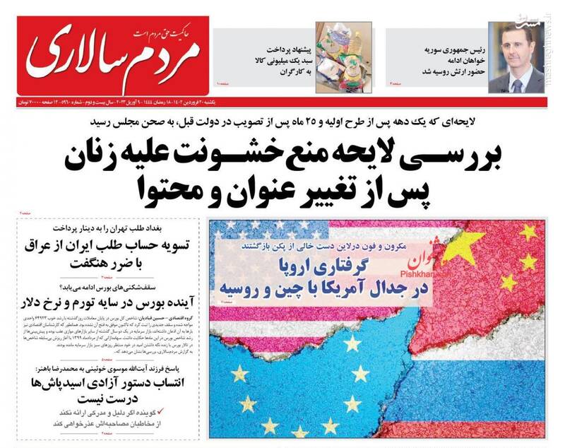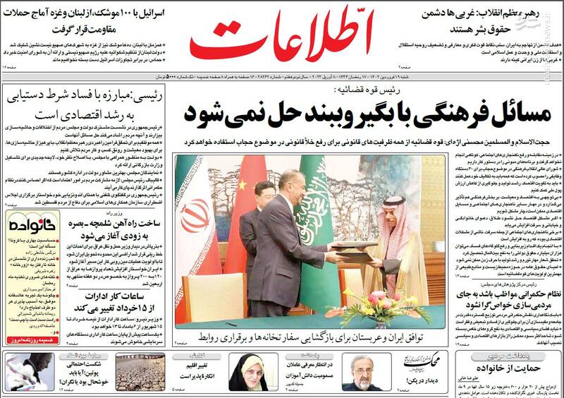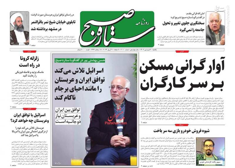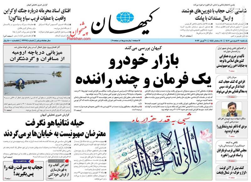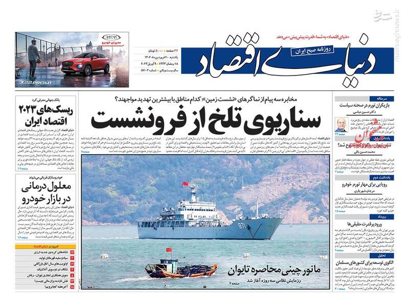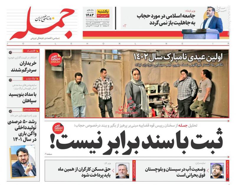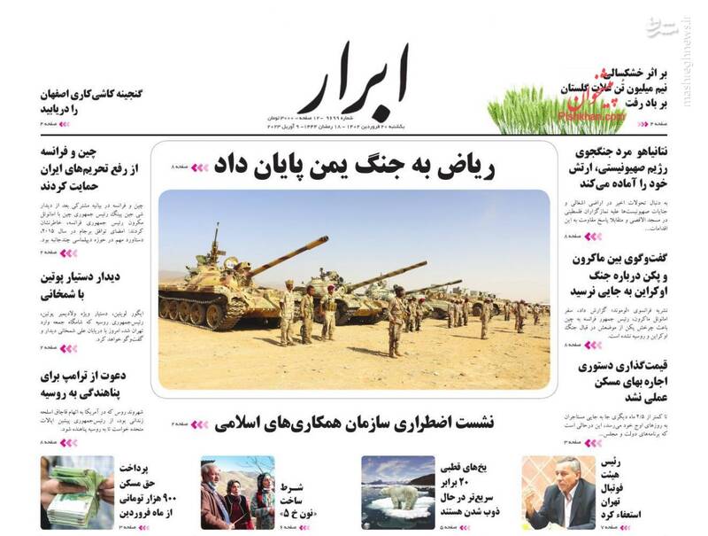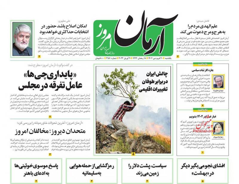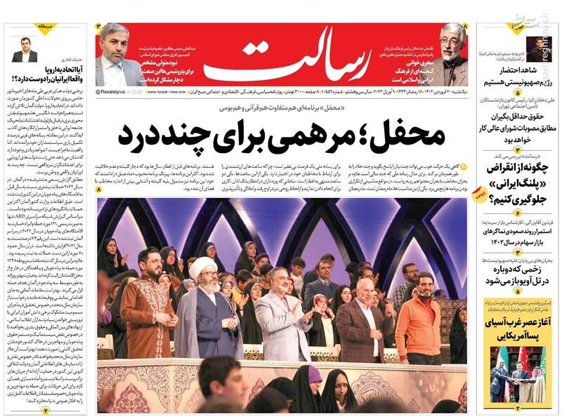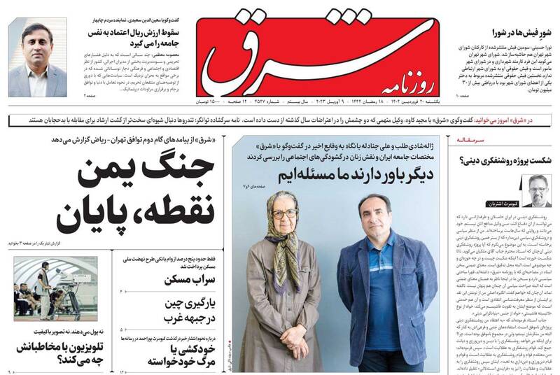 صفحه اول روزنامههای یکشنبه ۲۰ فروردین ماه ۱۴۰۲