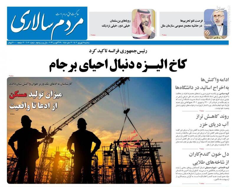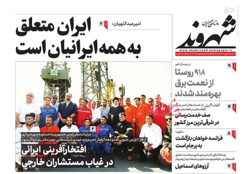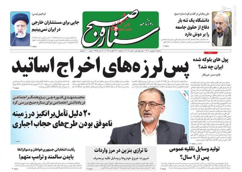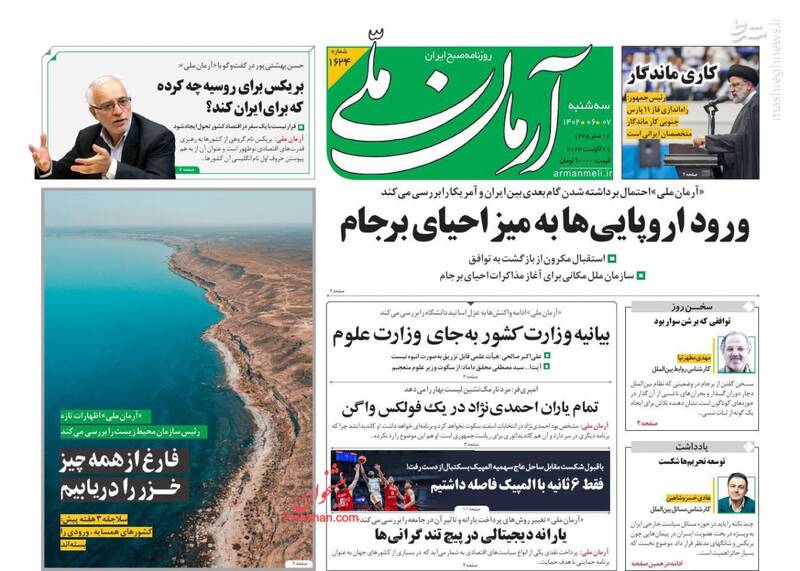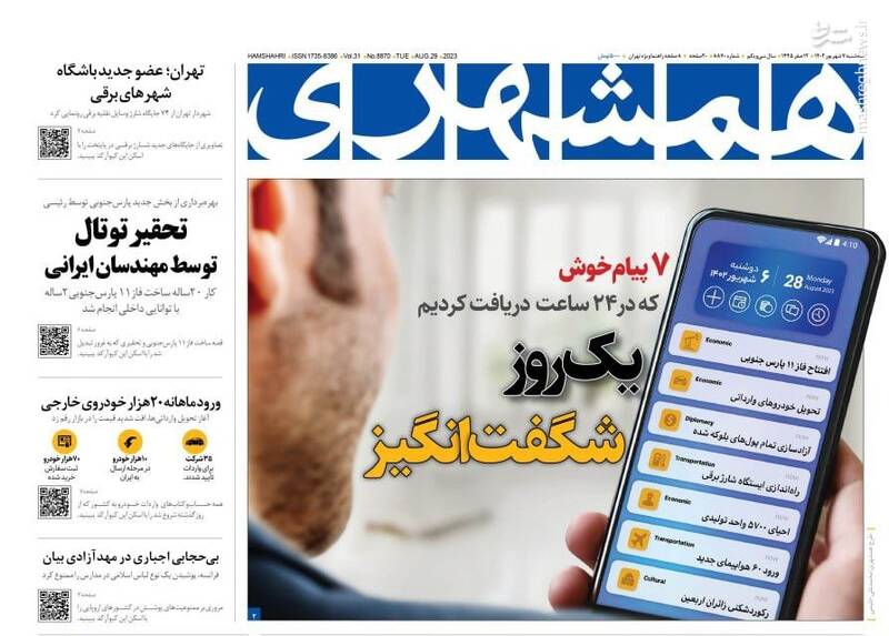 صفحه اول روزنامههای سهشنبه ۷ شهریور ۱۴۰۲