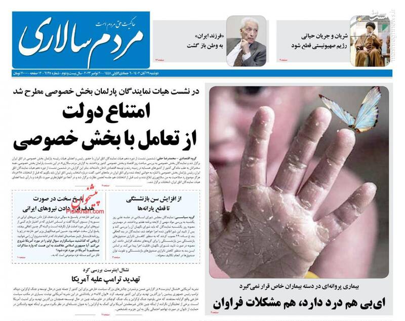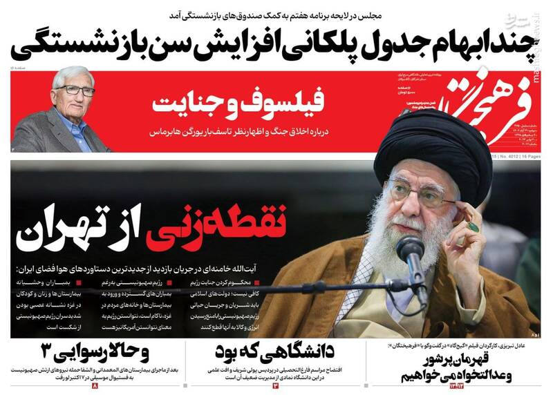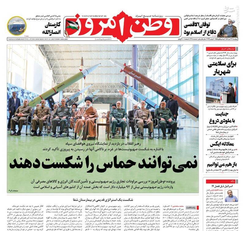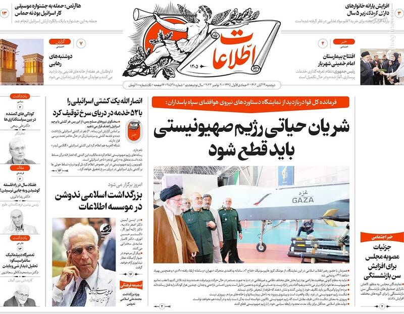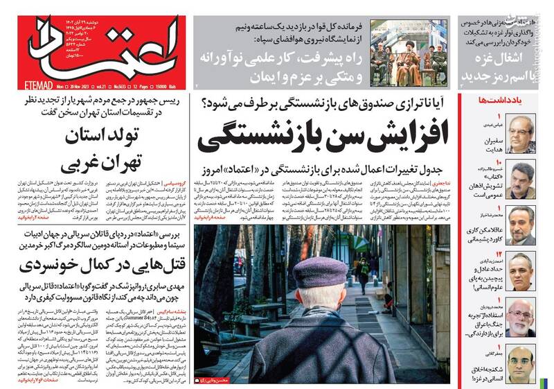 صفحه اول روزنامههای دوشنبه ۲۹ آبان ۱۴۰۲