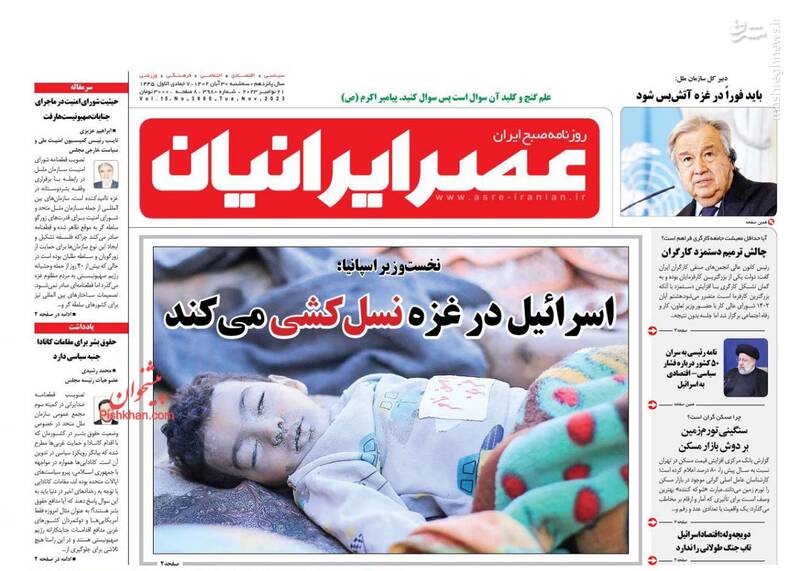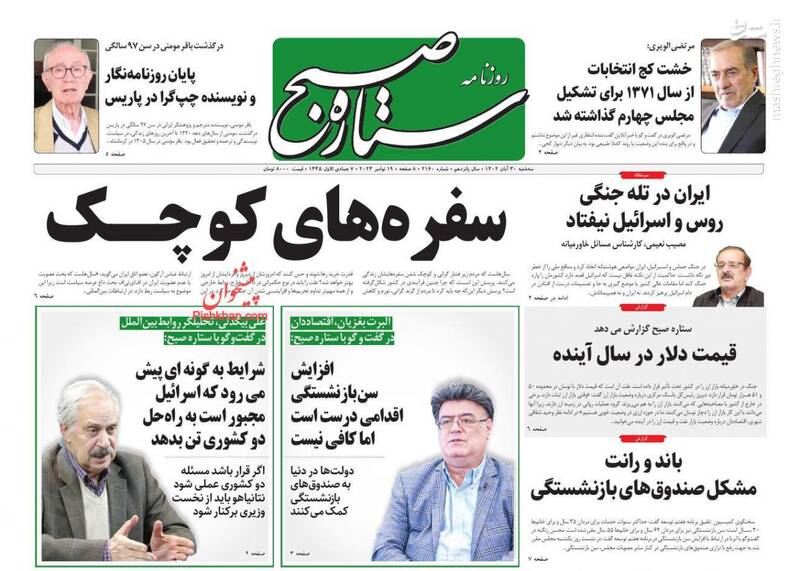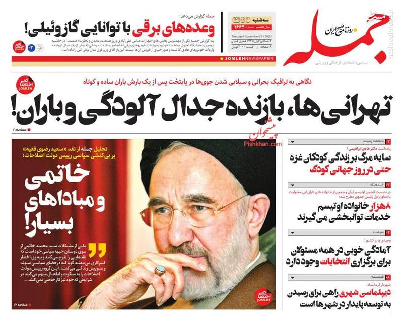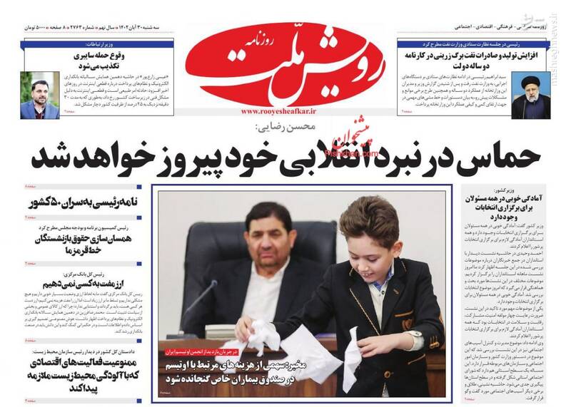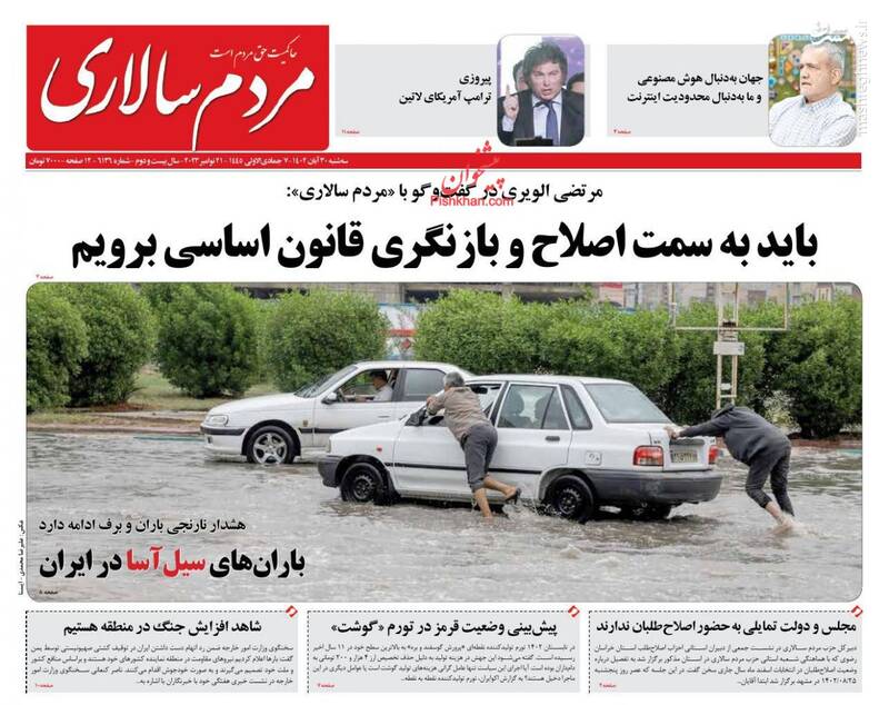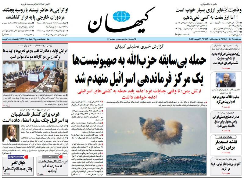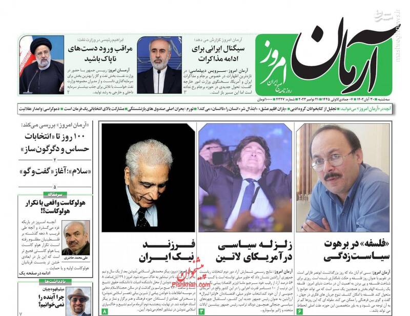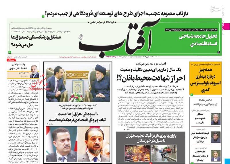 صفحه اول روزنامههای سهشنبه ۳۰ آبان ۱۴۰۲