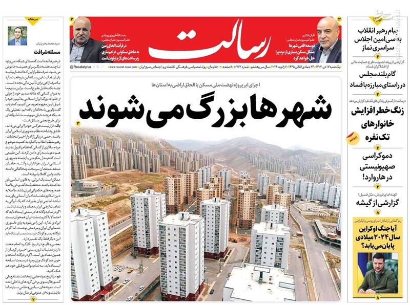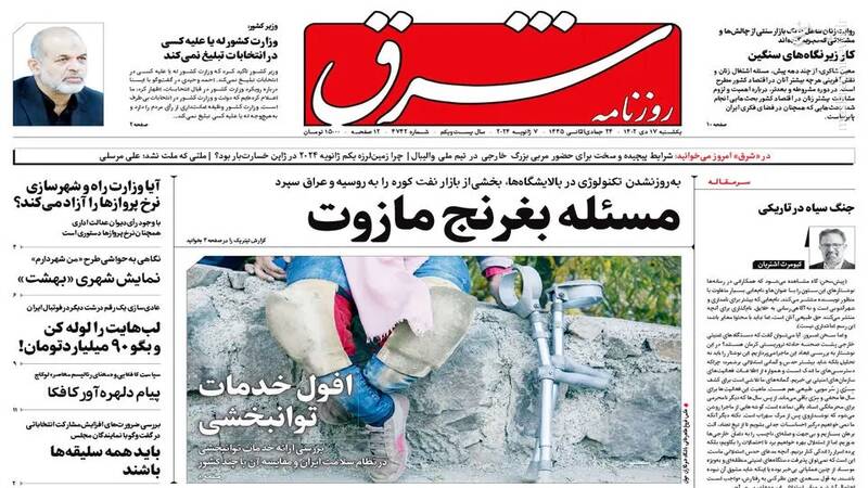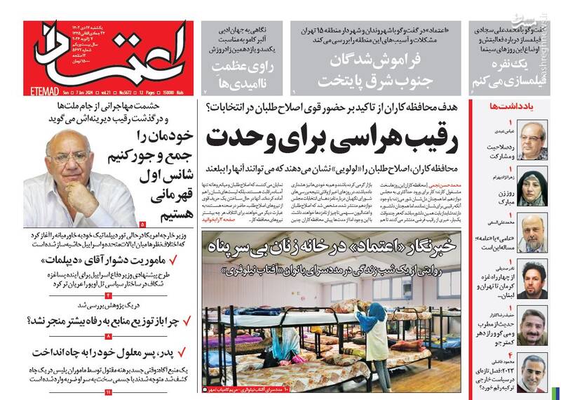 صفحه اول روزنامههای یکشنبه ۱۷ دی ۱۴۰۲