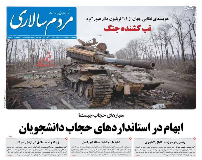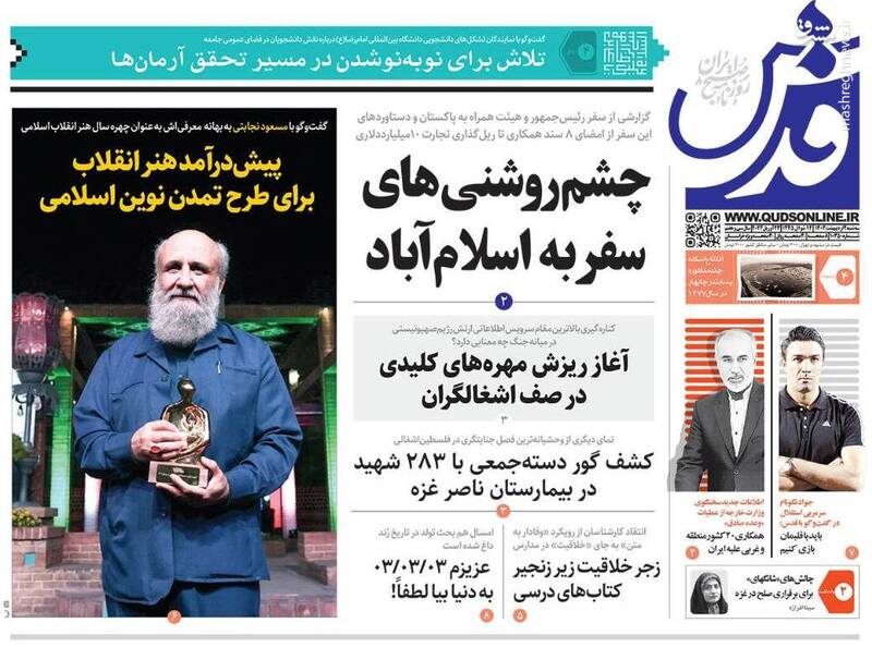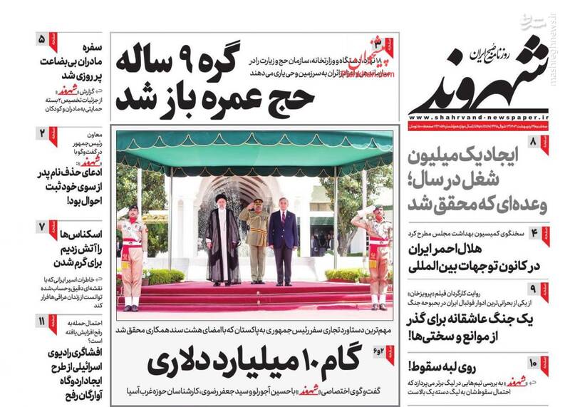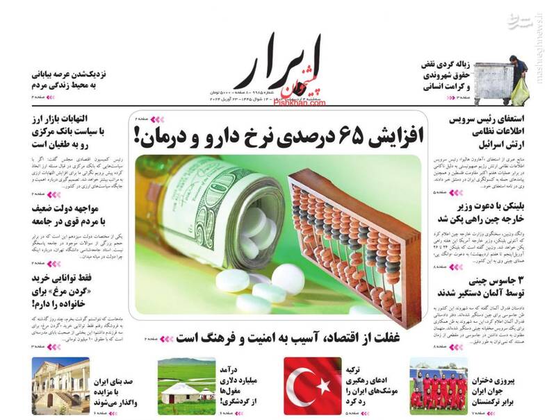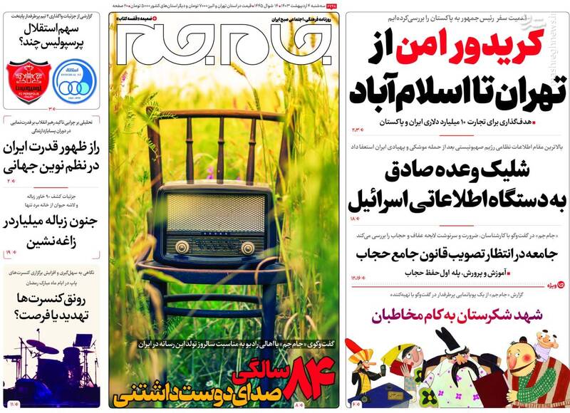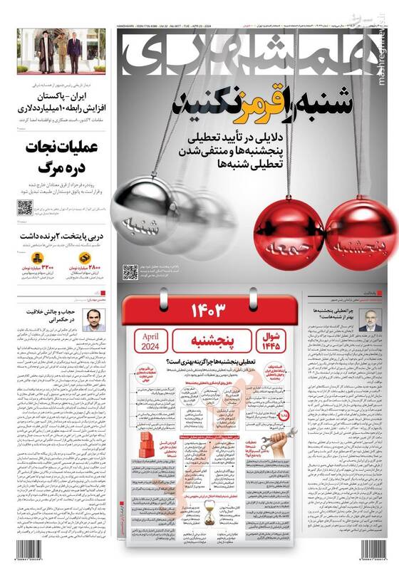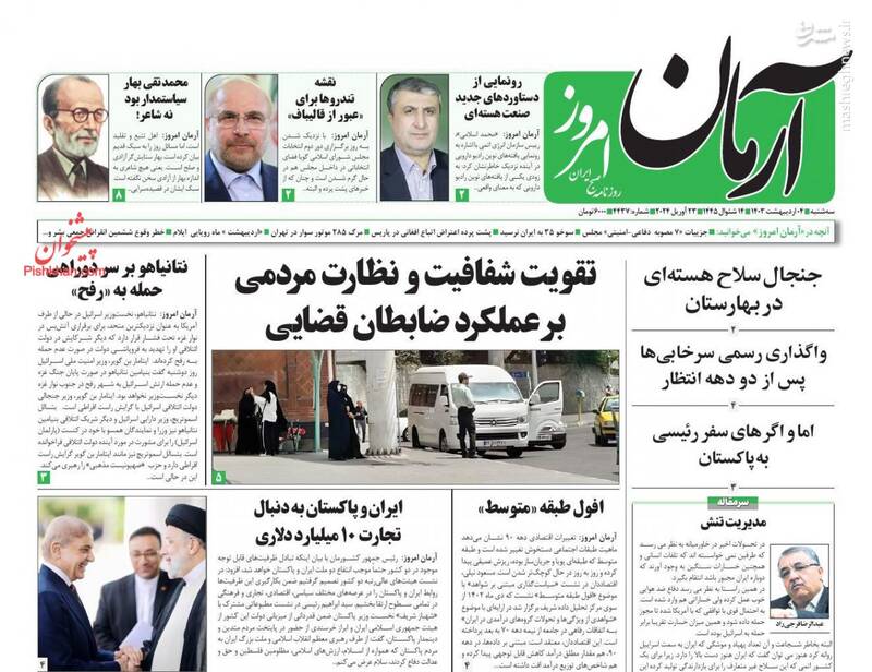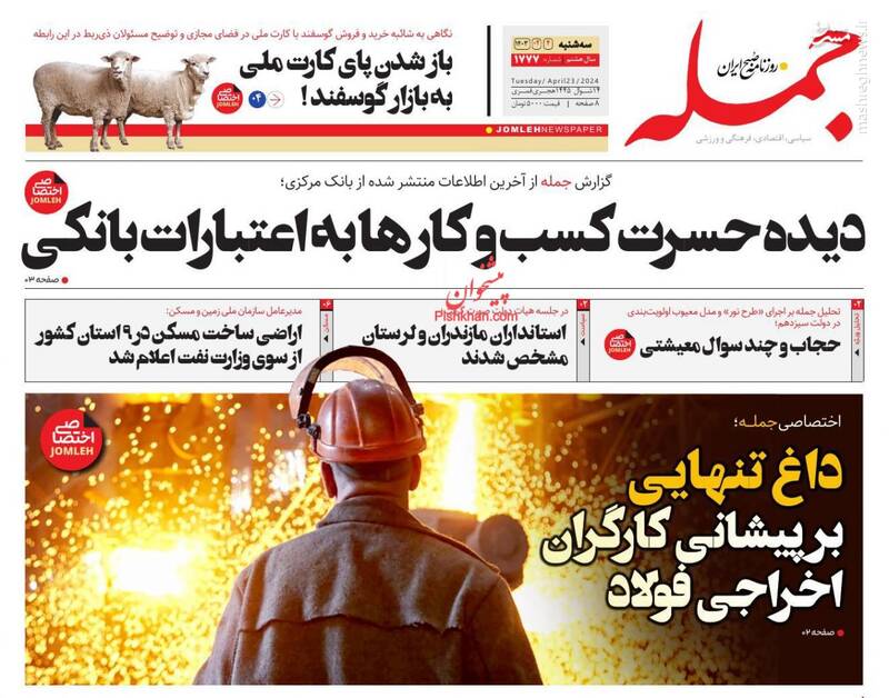 صفحه اول روزنامههای سهشنبه ۴ اردیبهشت ۱۴۰۳