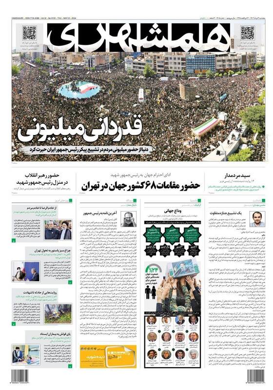 صفحه اول روزنامههای پنجشنبه ۳ خرداد ۱۴۰۳
