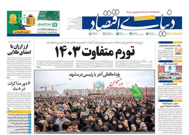 صفحه اول روزنامههای شنبه ۵ خرداد ۱۴۰۳