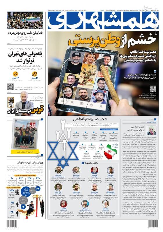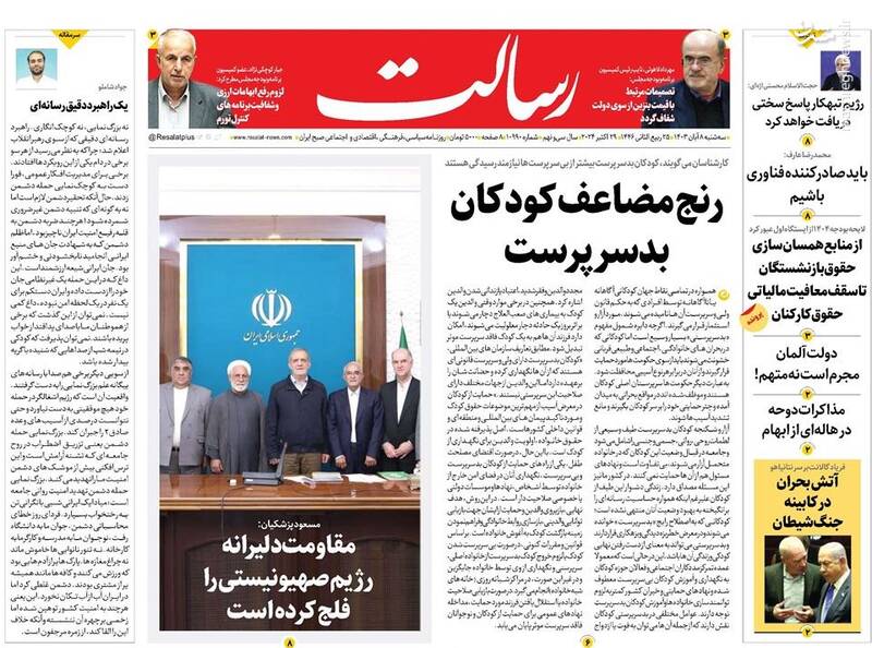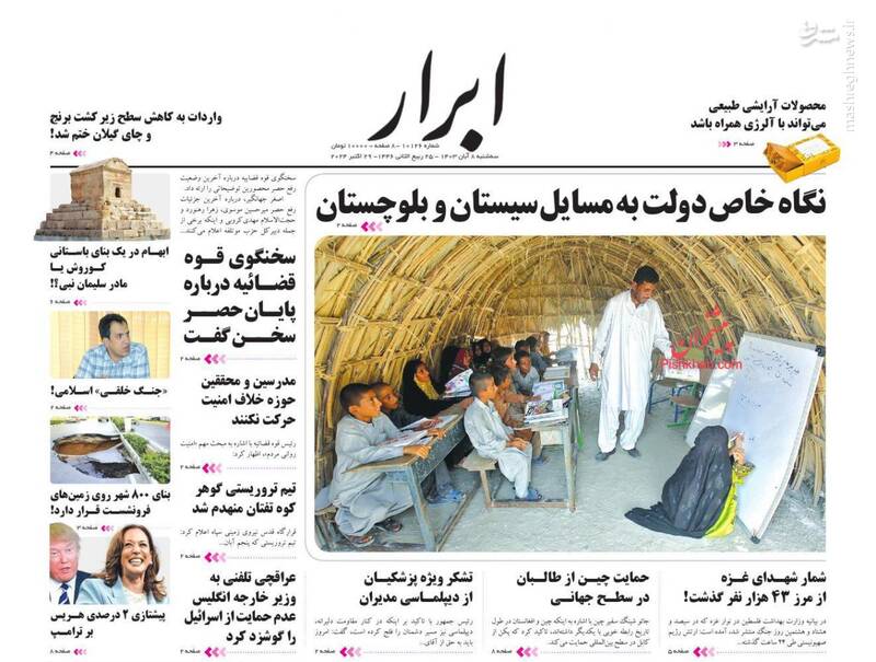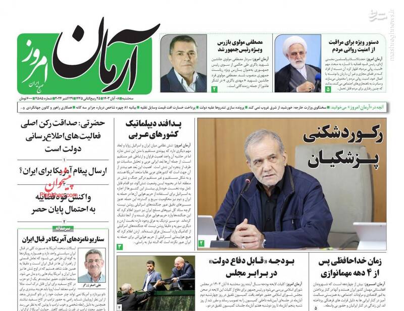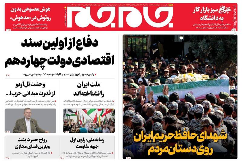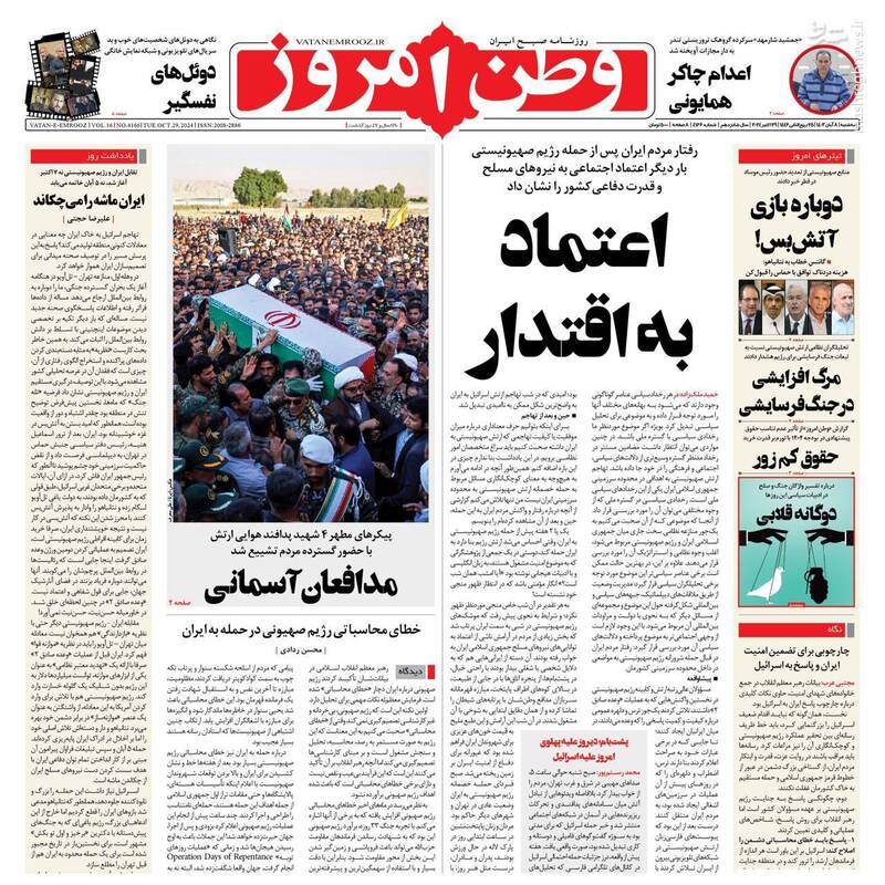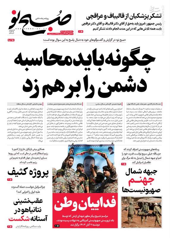 صفحه اول روزنامههای سه شنبه ۸ آبان ۱۴۰۳