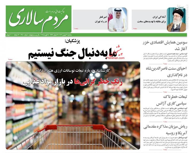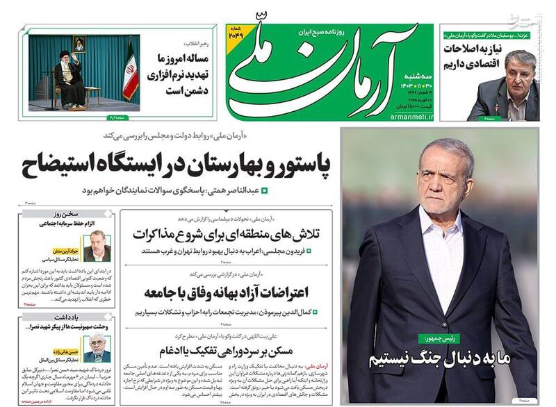 صفحه اول روزنامههای سهشنبه ۳۰ بهمن ماه ۱۴۰۳