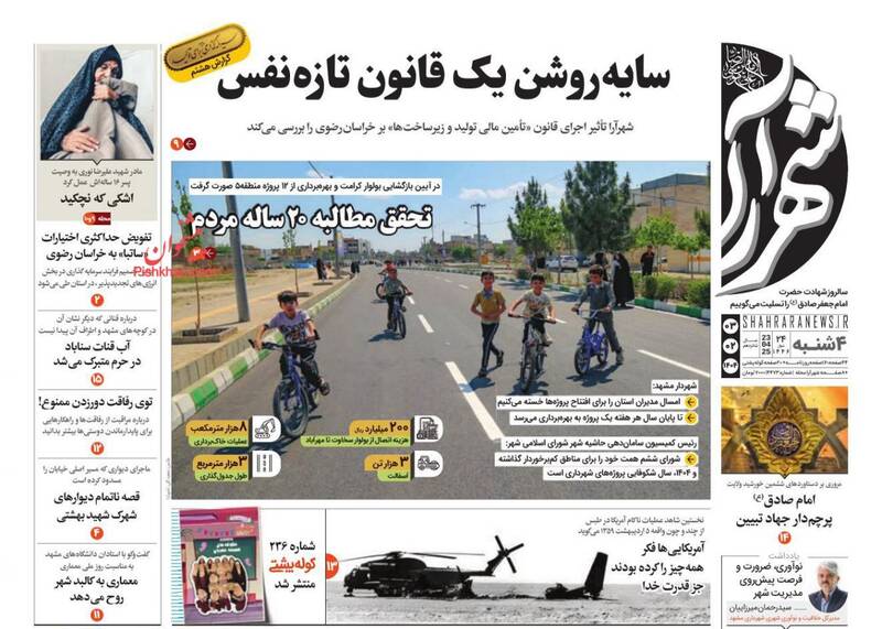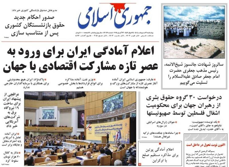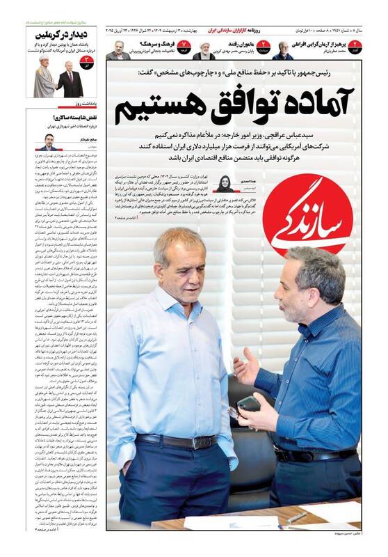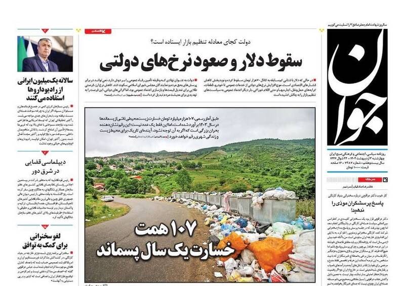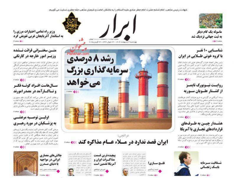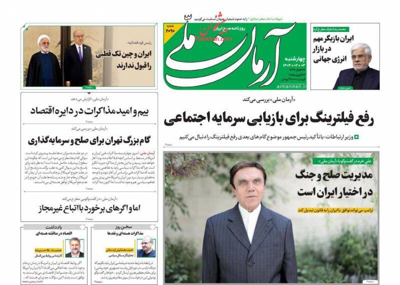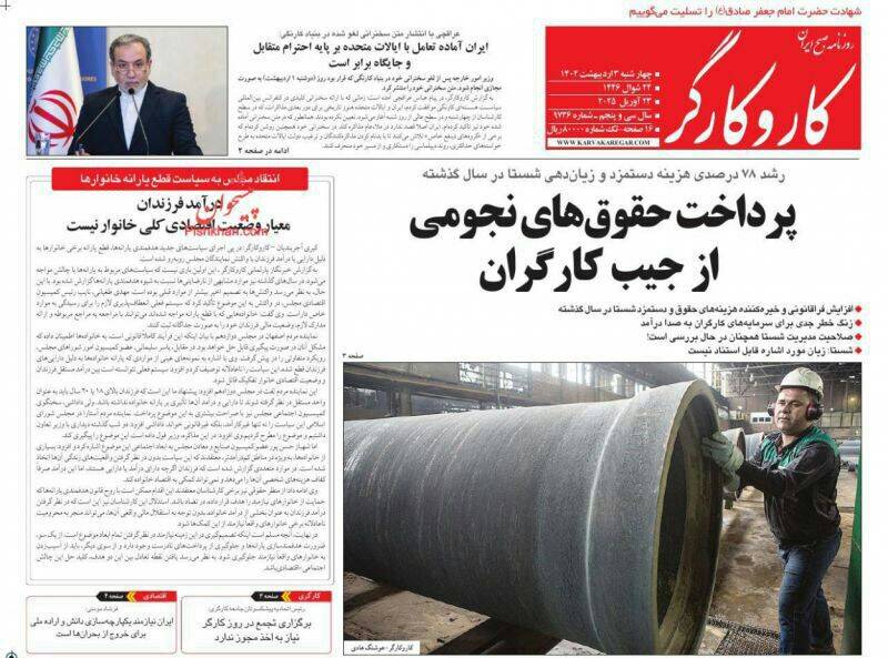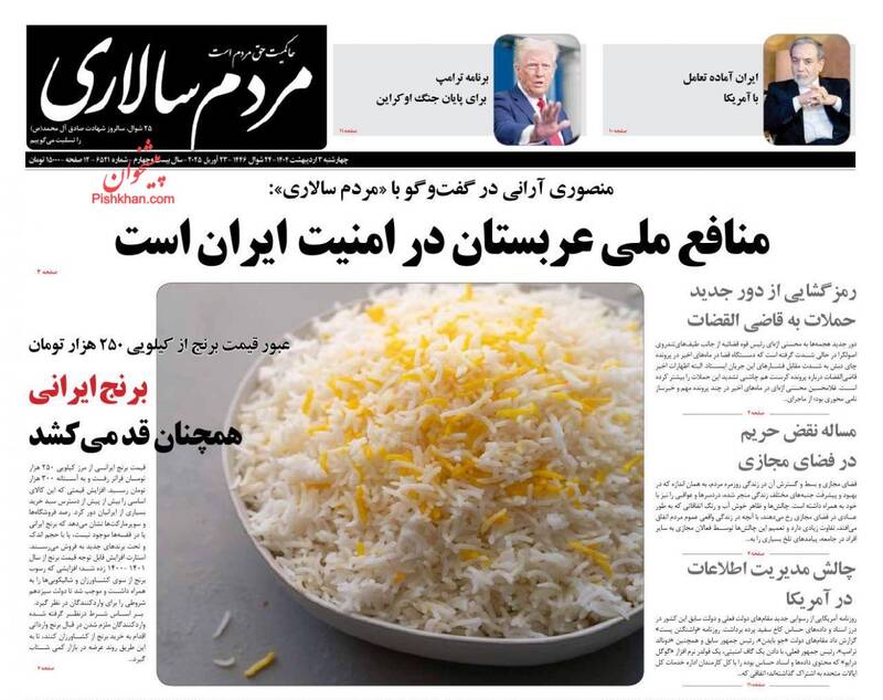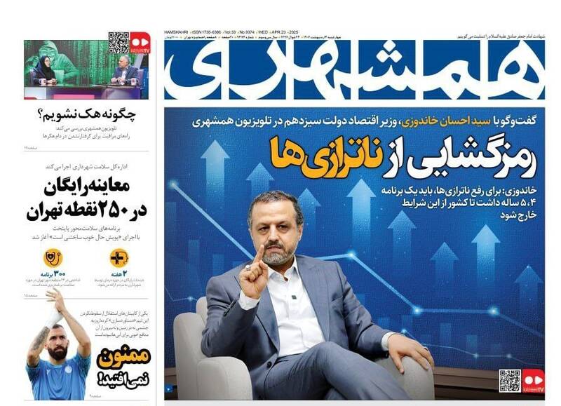 صفحه اول روزنامههای چهارشنبه ۳ اردیبهشت ۱۴۰۴
