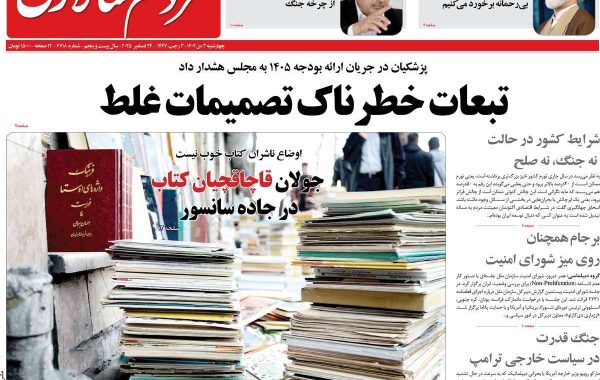 صفحه اول روزنامههای پنجشنبه ۲۷ آذر ۱۴۰۴